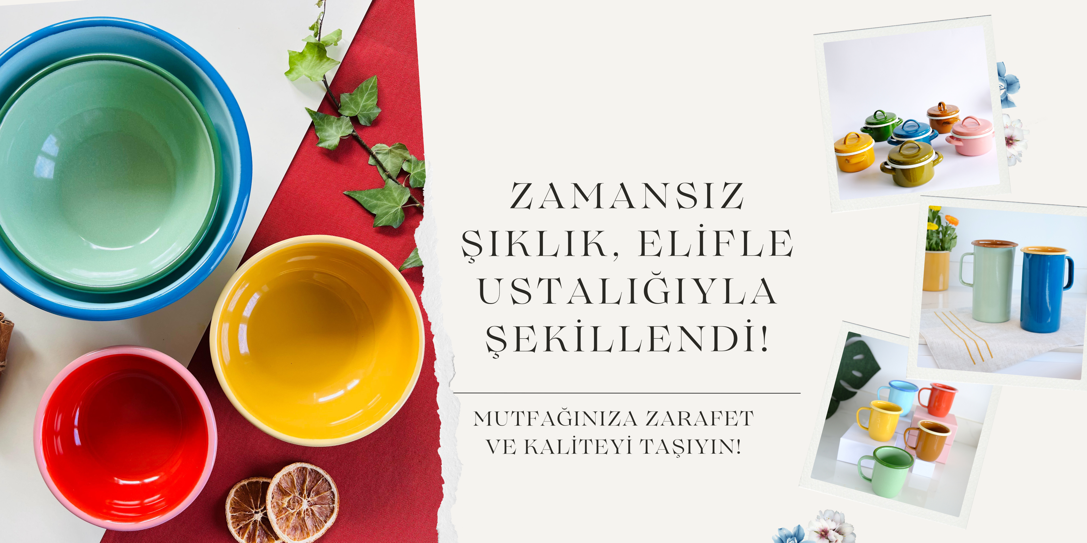 Ürünlerimiz, cam tozlarıyla zenginleştirilmiş emaye kaplama ile buluşur. Renkler ve desenler, Elifle’nin imzasını taşıyan özel dokunuşlarla hayat kazanır.