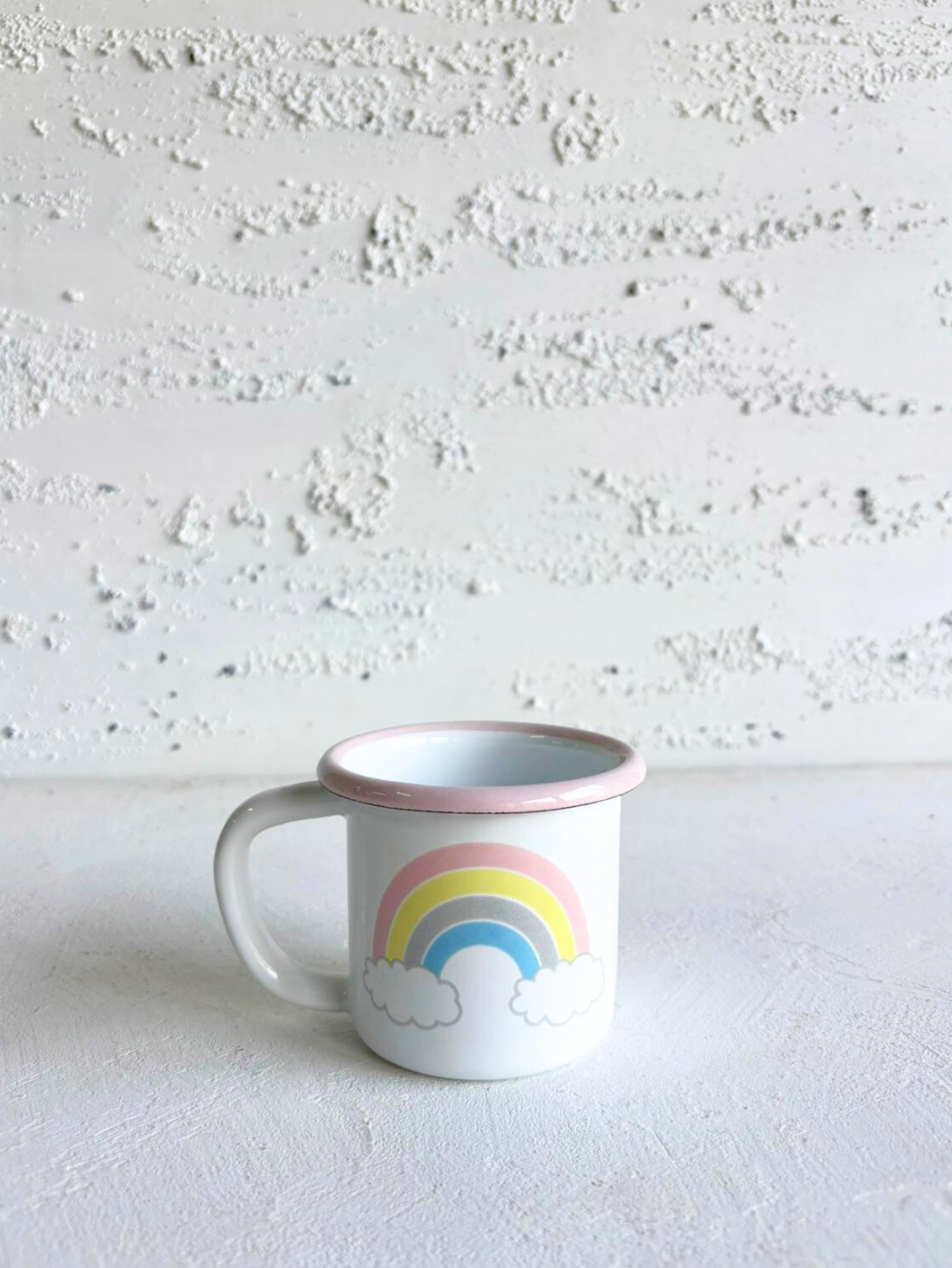 🌈 Emaye Küçük Kupa 250 ml – Gökkuşağı Desen