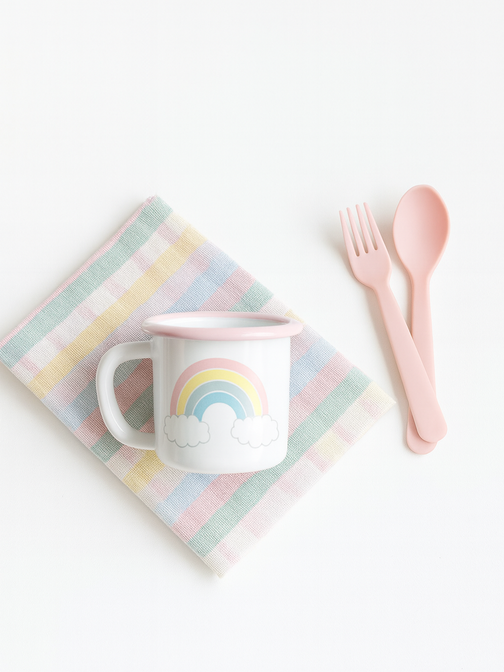 Bu gökkuşağı desenli emaye kupa, çocuğunuzun içecek keyfini artırırken sağlıklı bir tercih sunar!