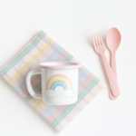 Gökkuşağı desenli bu sevimli emaye kupa, çocukların içecek saatlerini daha eğlenceli hale getirir. Hafif ve dayanıklı yapısıyla, küçük eller için rahat bir tutuş sağlar. Sağlıklı emaye kaplaması sayesinde uzun ömürlü ve güvenli bir kullanım sunar.