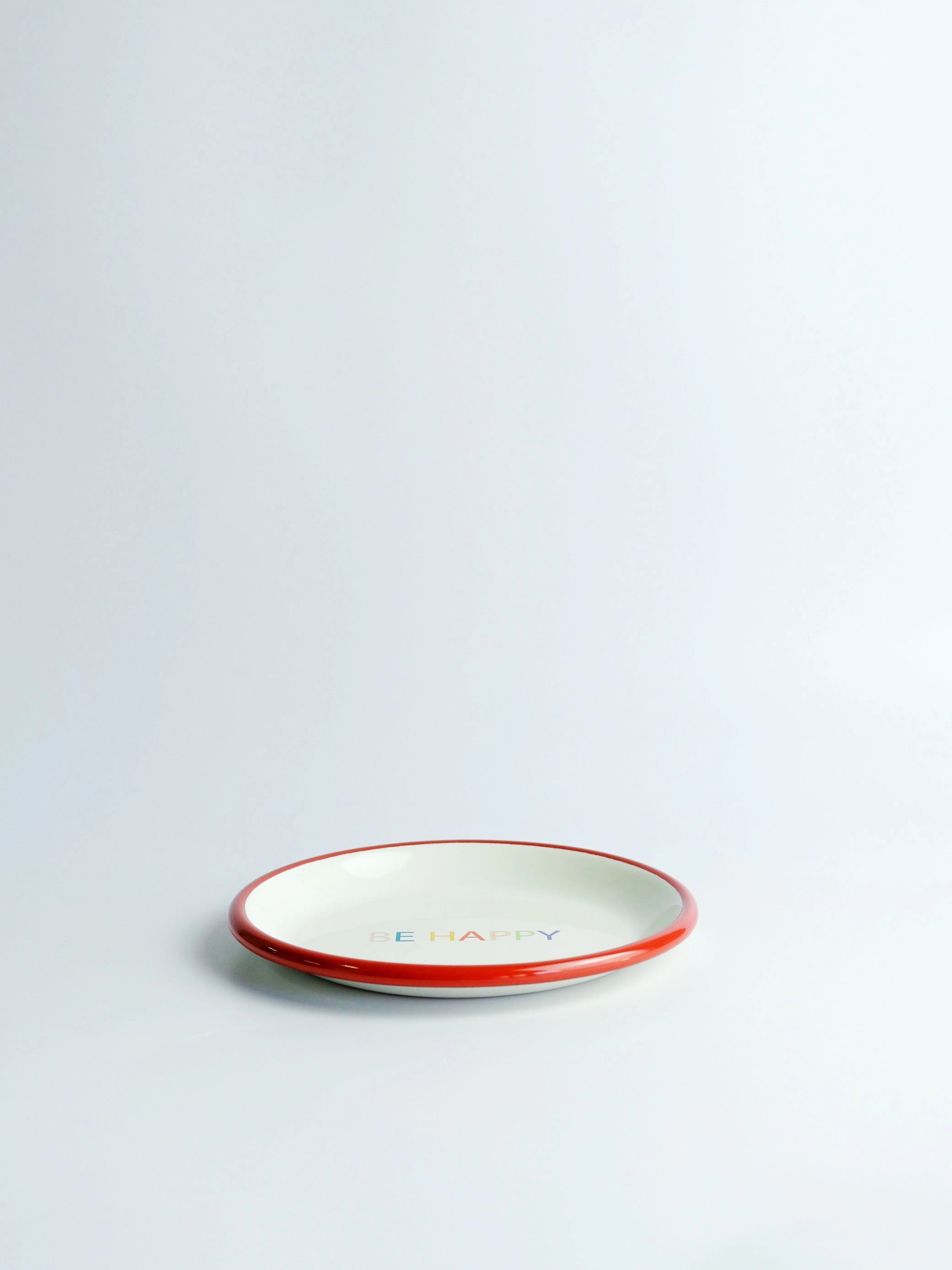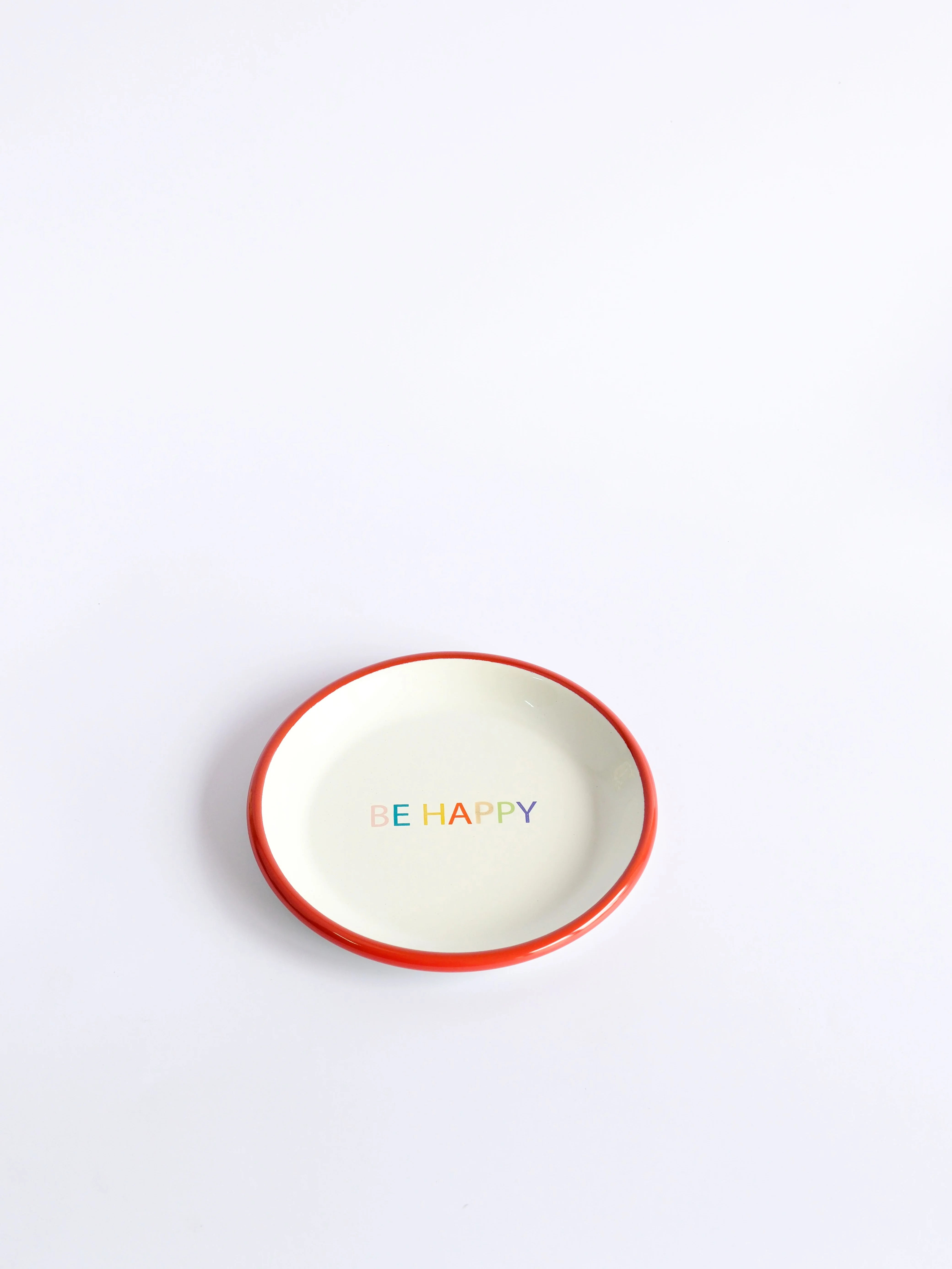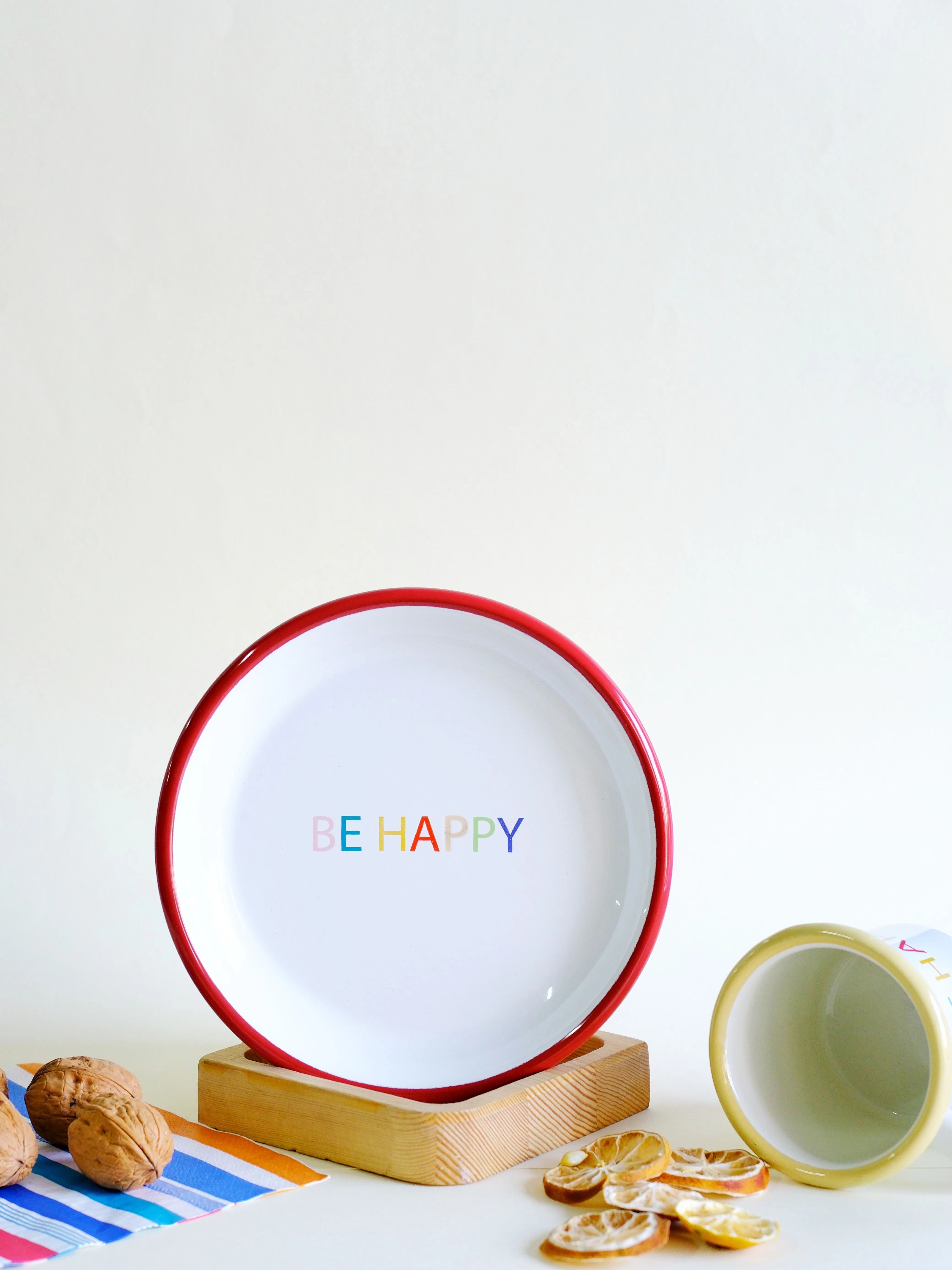 Emaye Tabak 16cm Be Happy Desen - Kırmızı