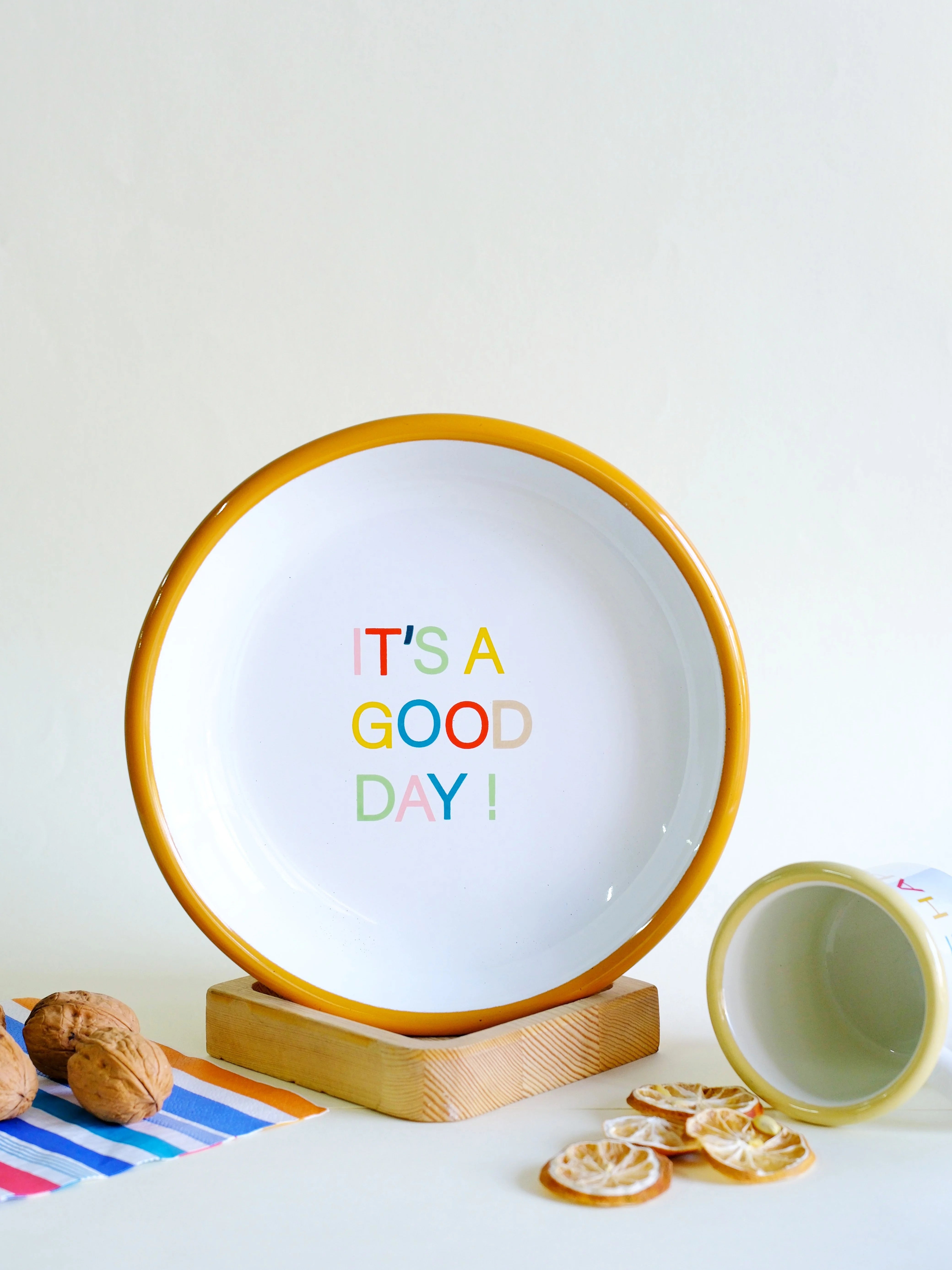 Emaye Tabak 18cm It's a Good Day Desen - Altınsarı
