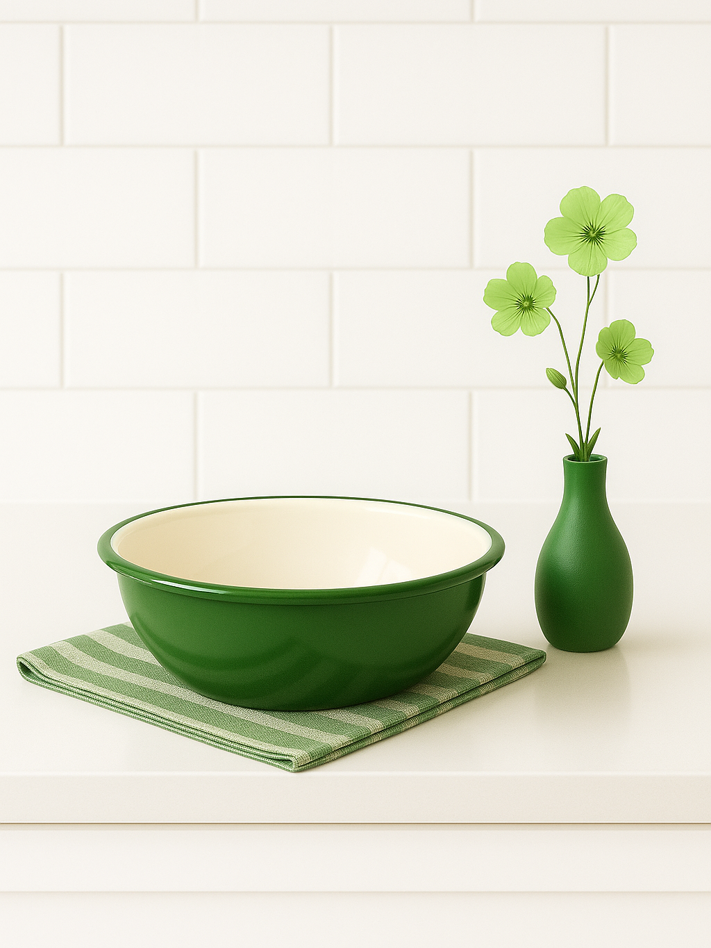 🌿 Doğal ve Zarif Tasarım: Yeşil rengi ve kontrast kenar detaylarıyla mutfağınıza şıklık katar.