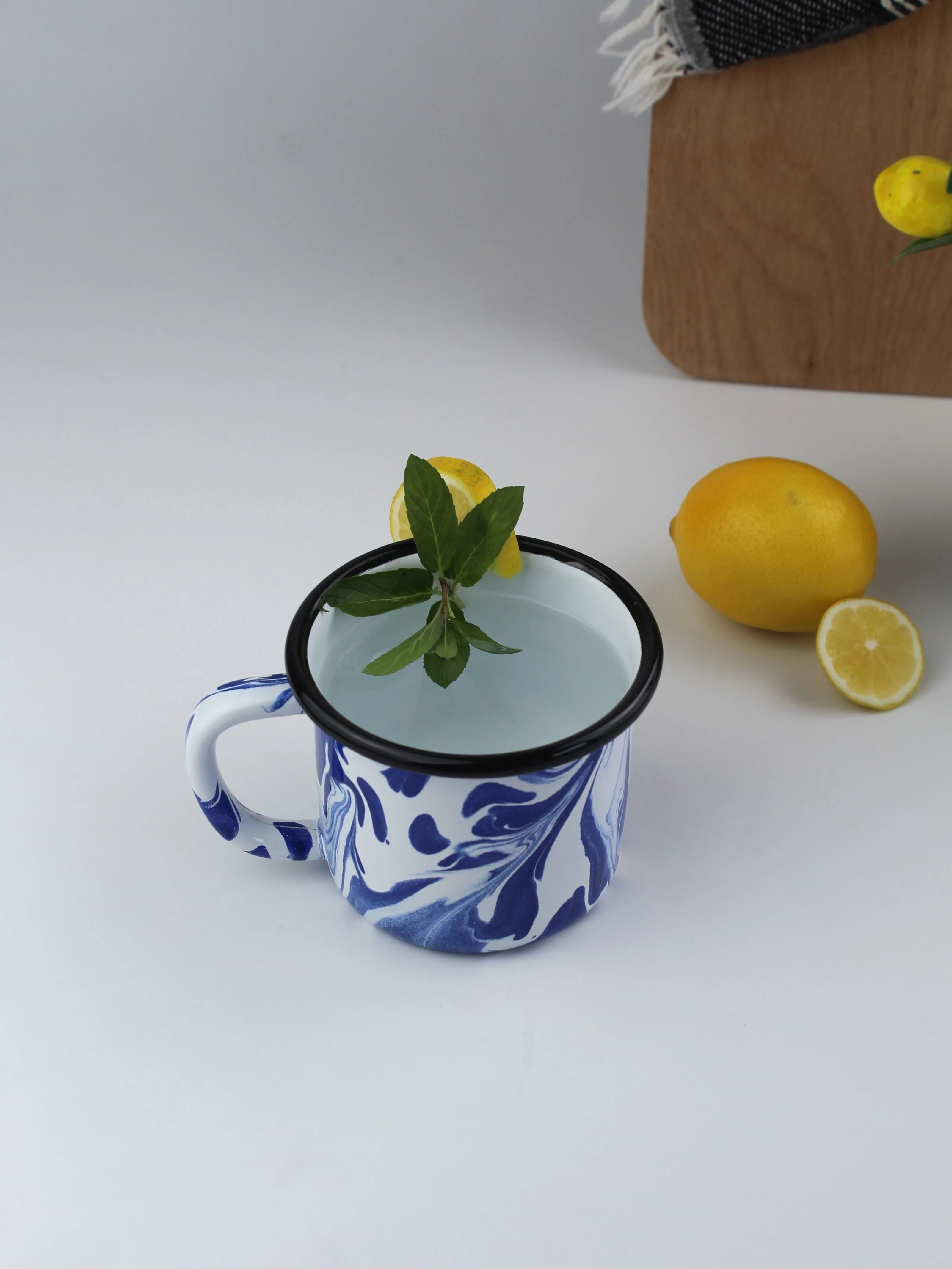 Emaye Lacivert Mermer Desen Kupa 350 ml