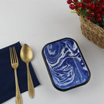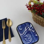 🌌 Zarif Mermer Desen: Beyaz zemin üzerindeki lacivert doğal mermer deseni ve ince siyah kenar detayı sofralarınıza sofistike bir hava katar.