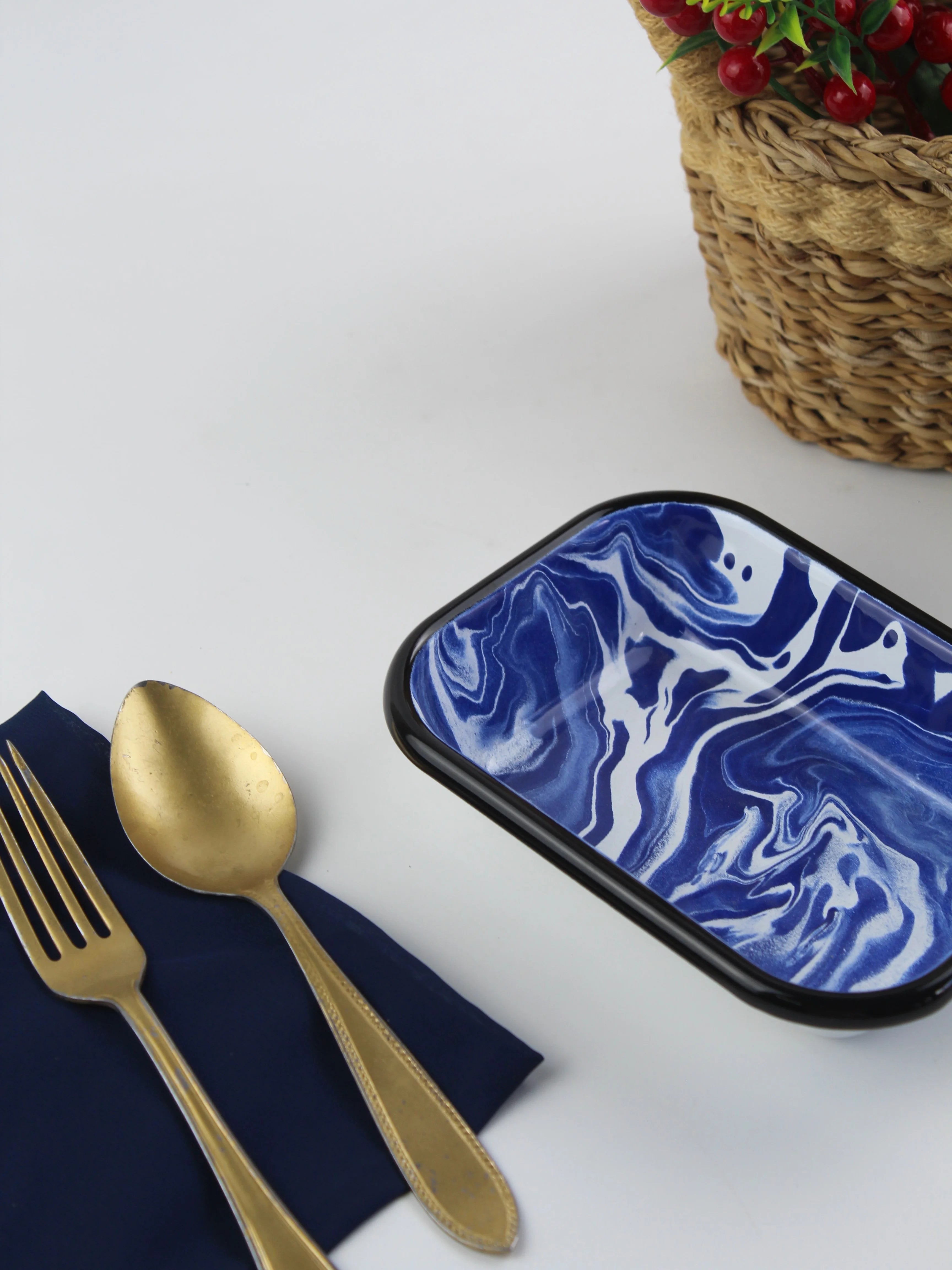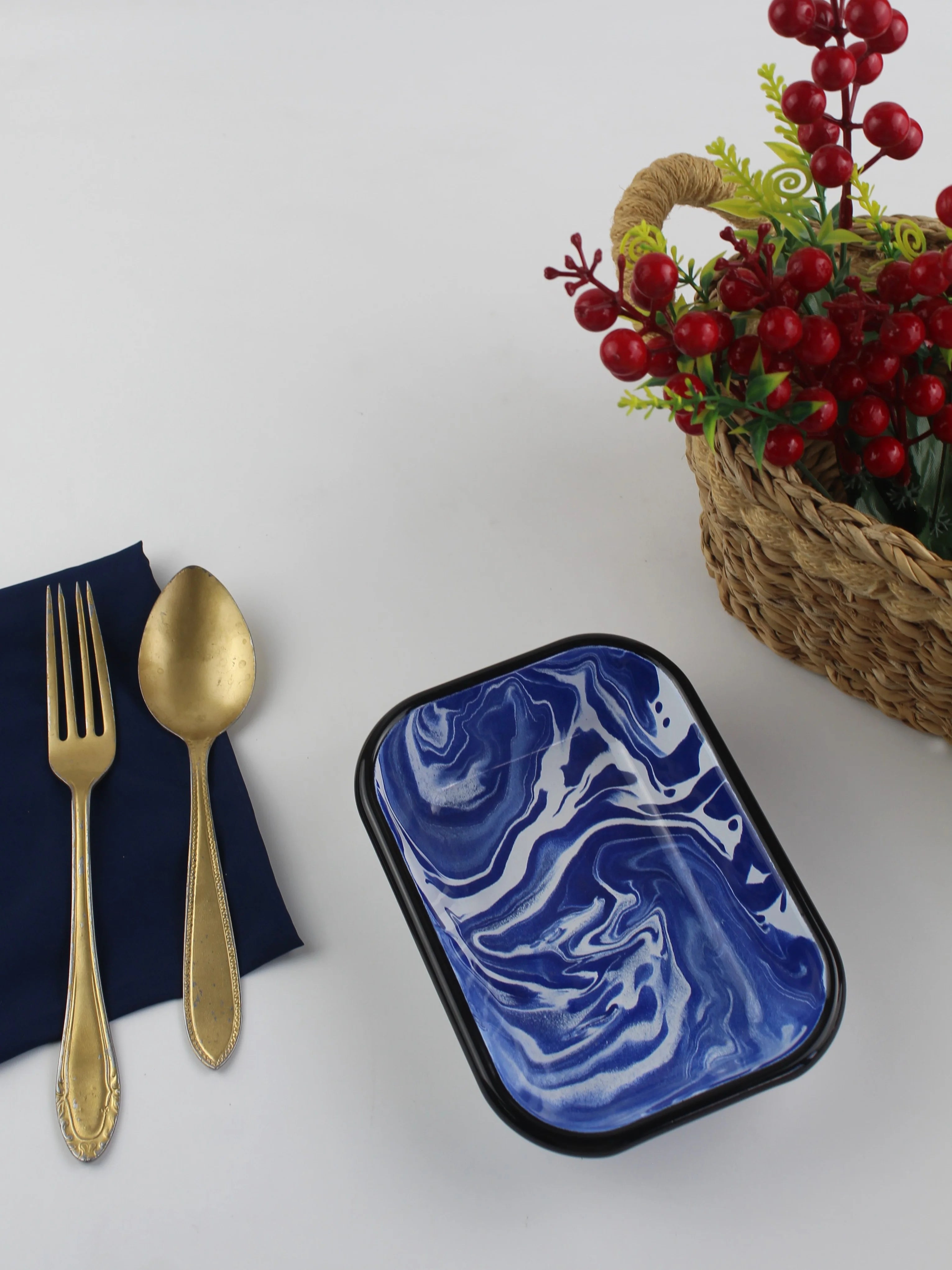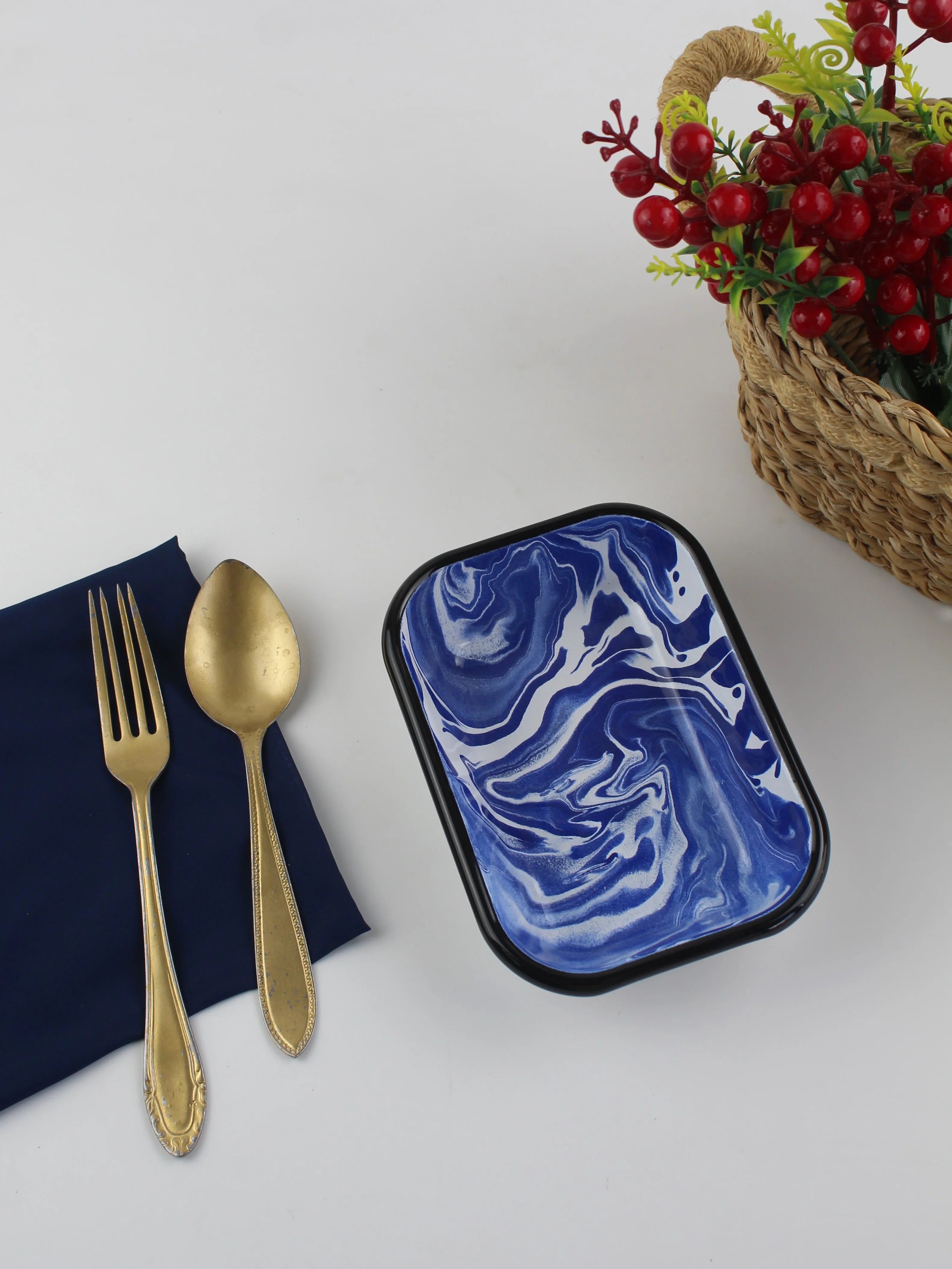 Emaye Lacivert Mermer Desen Meze Tabağı V1