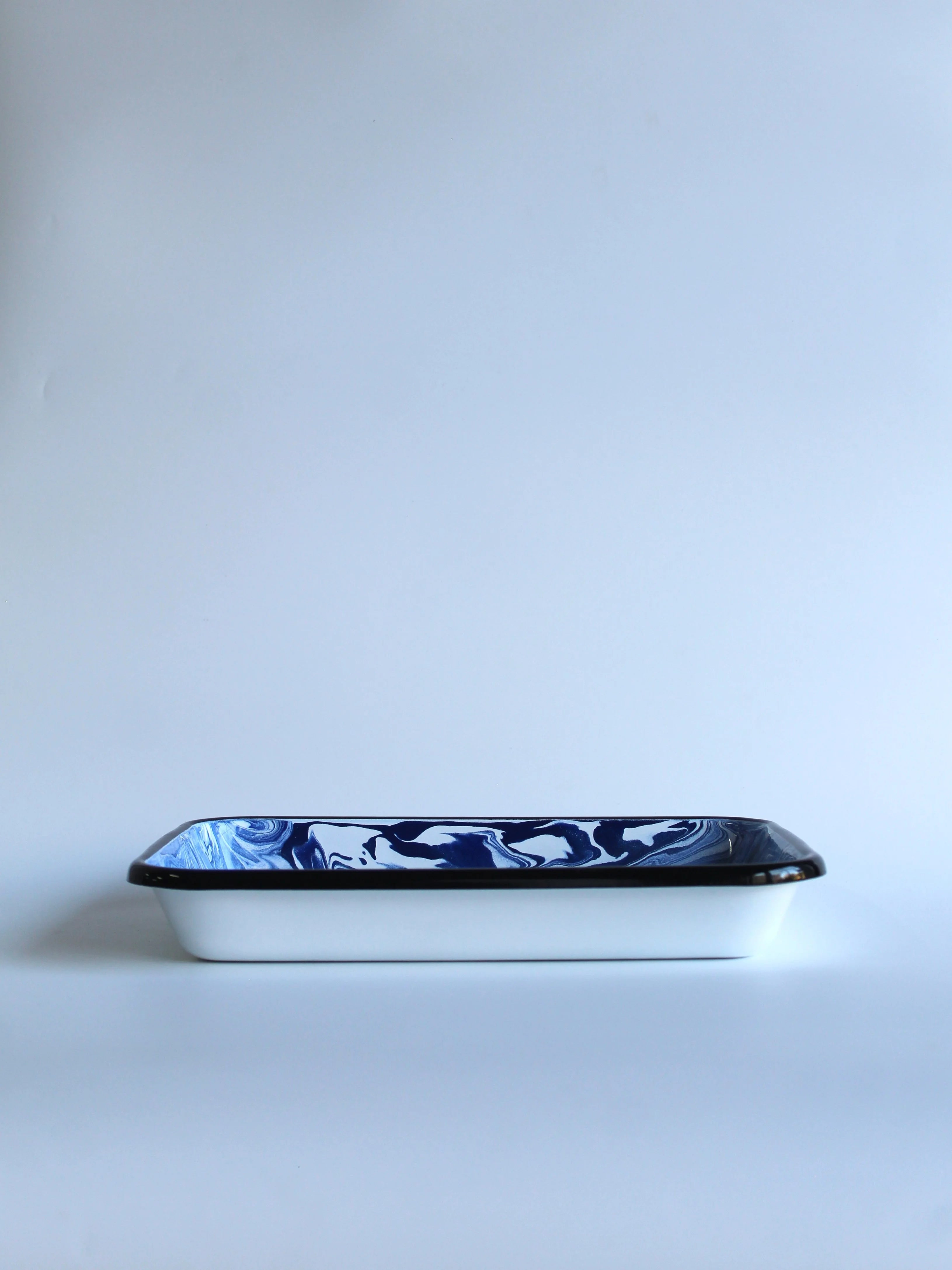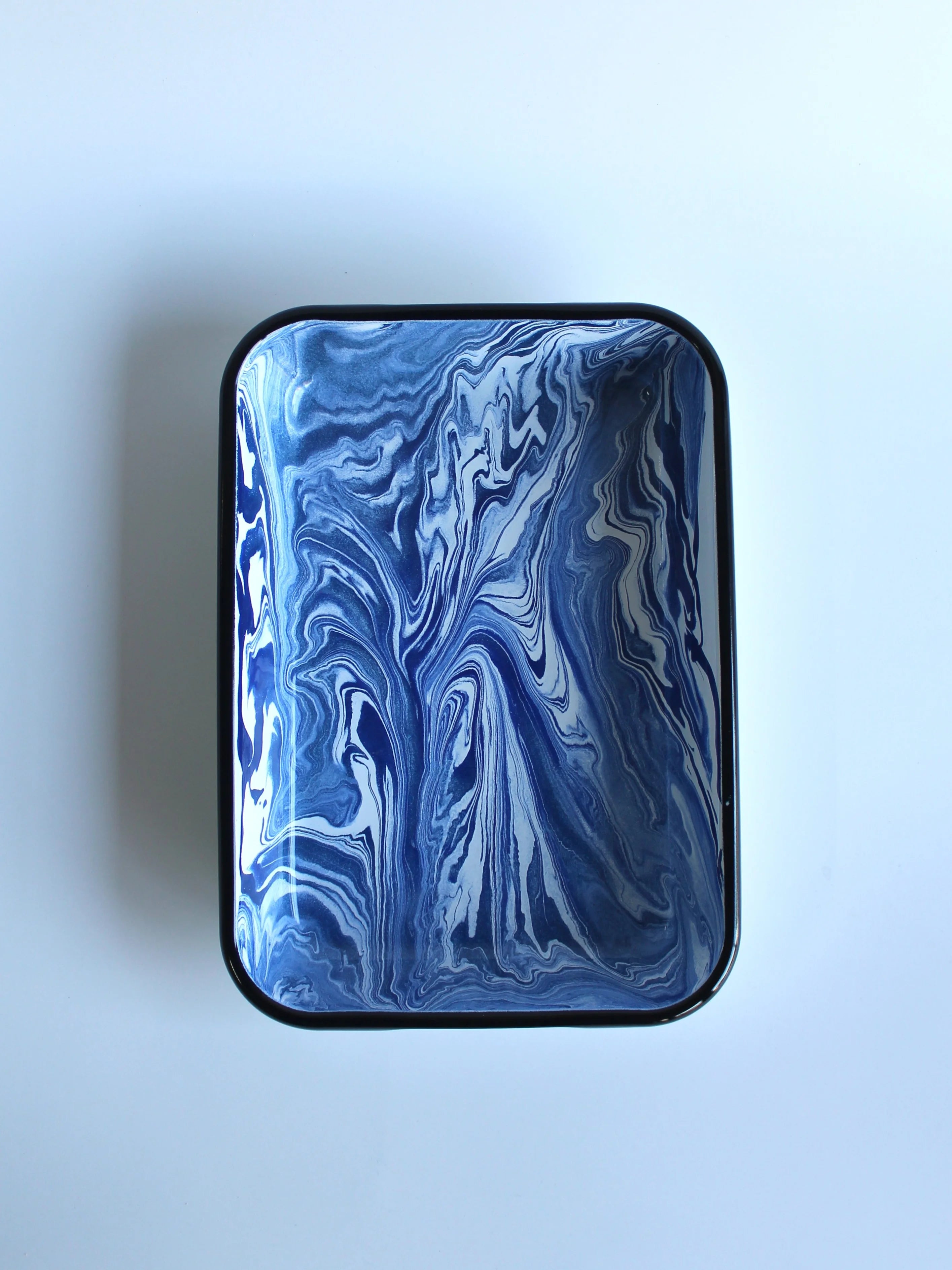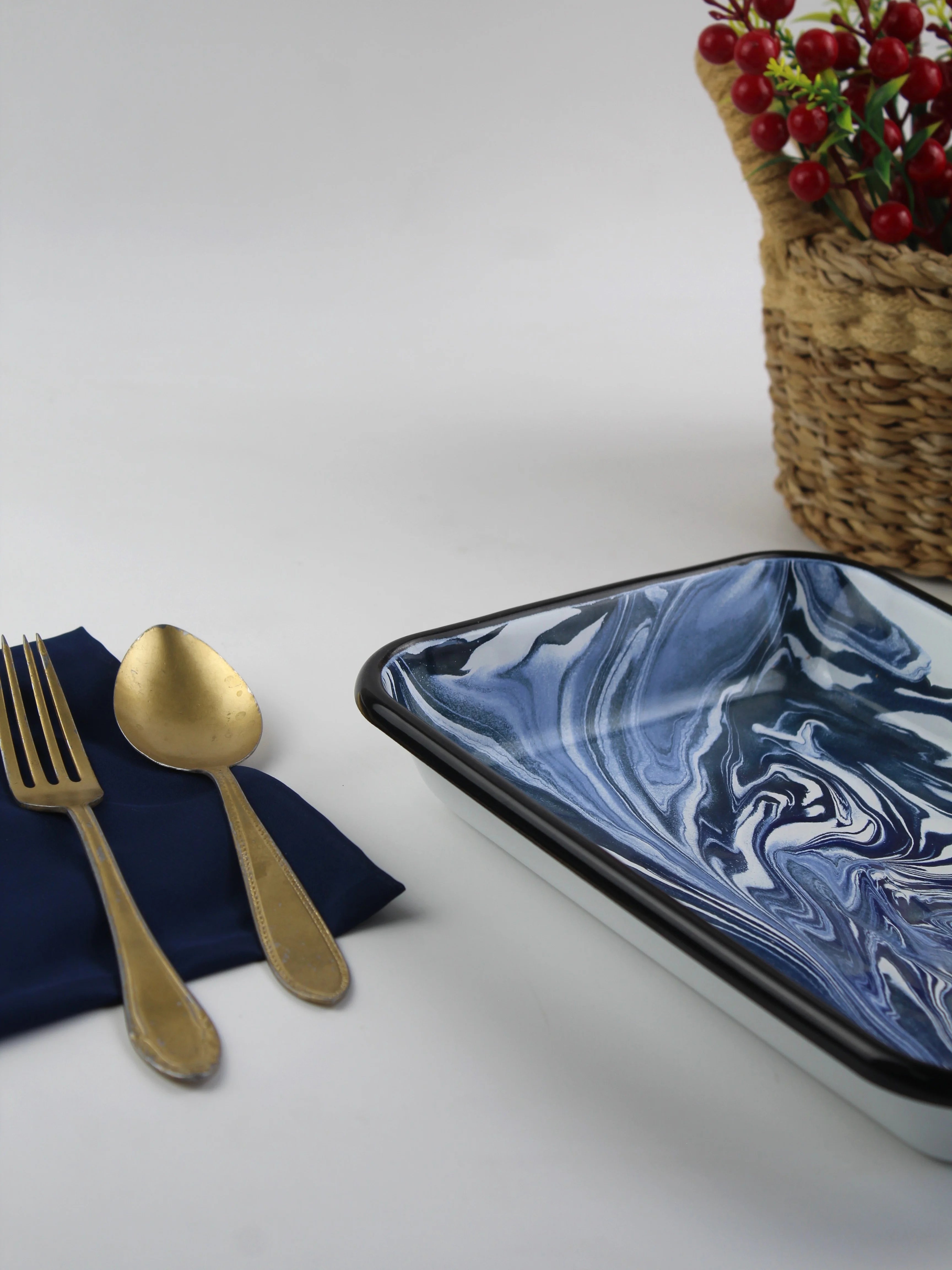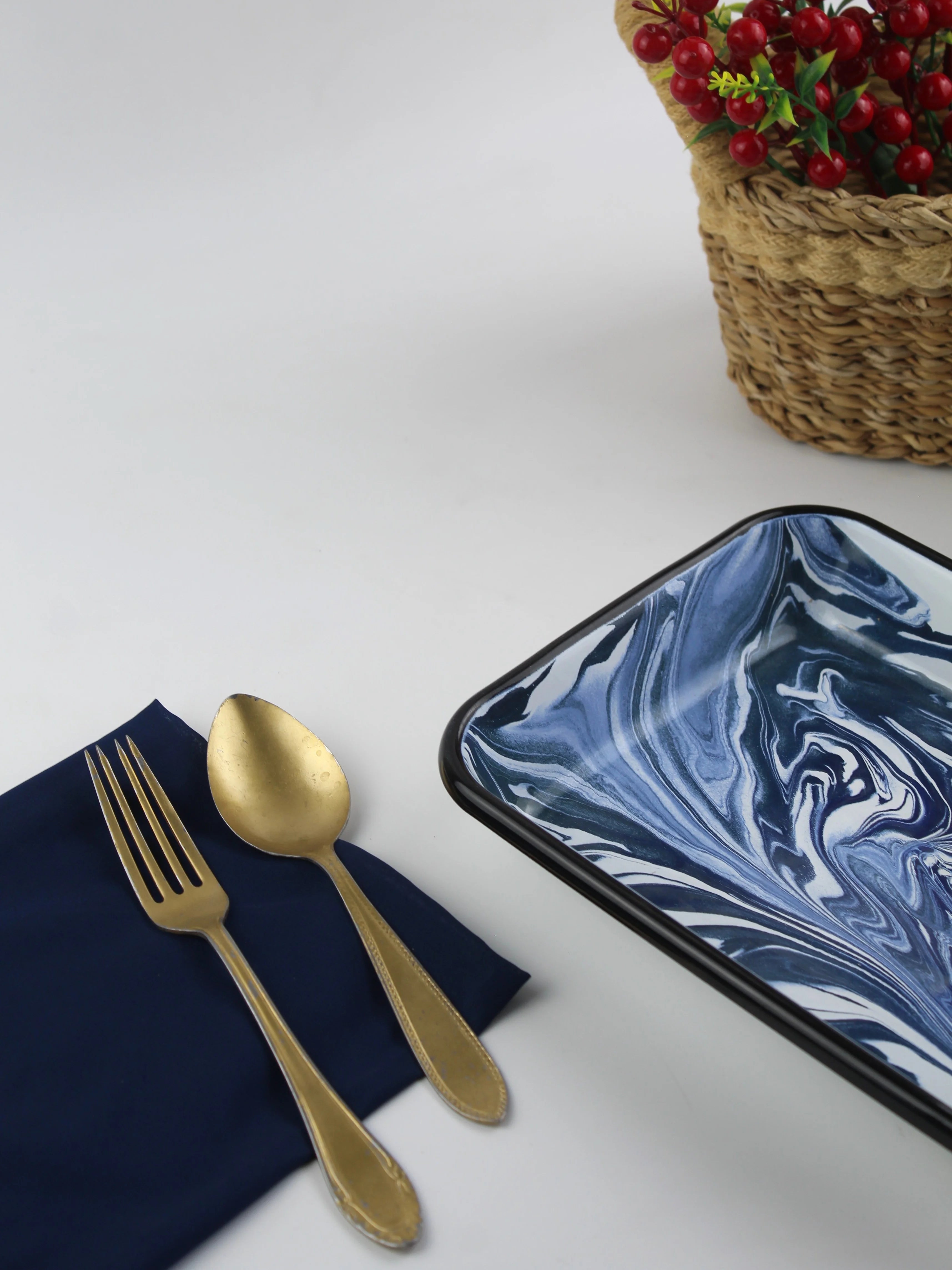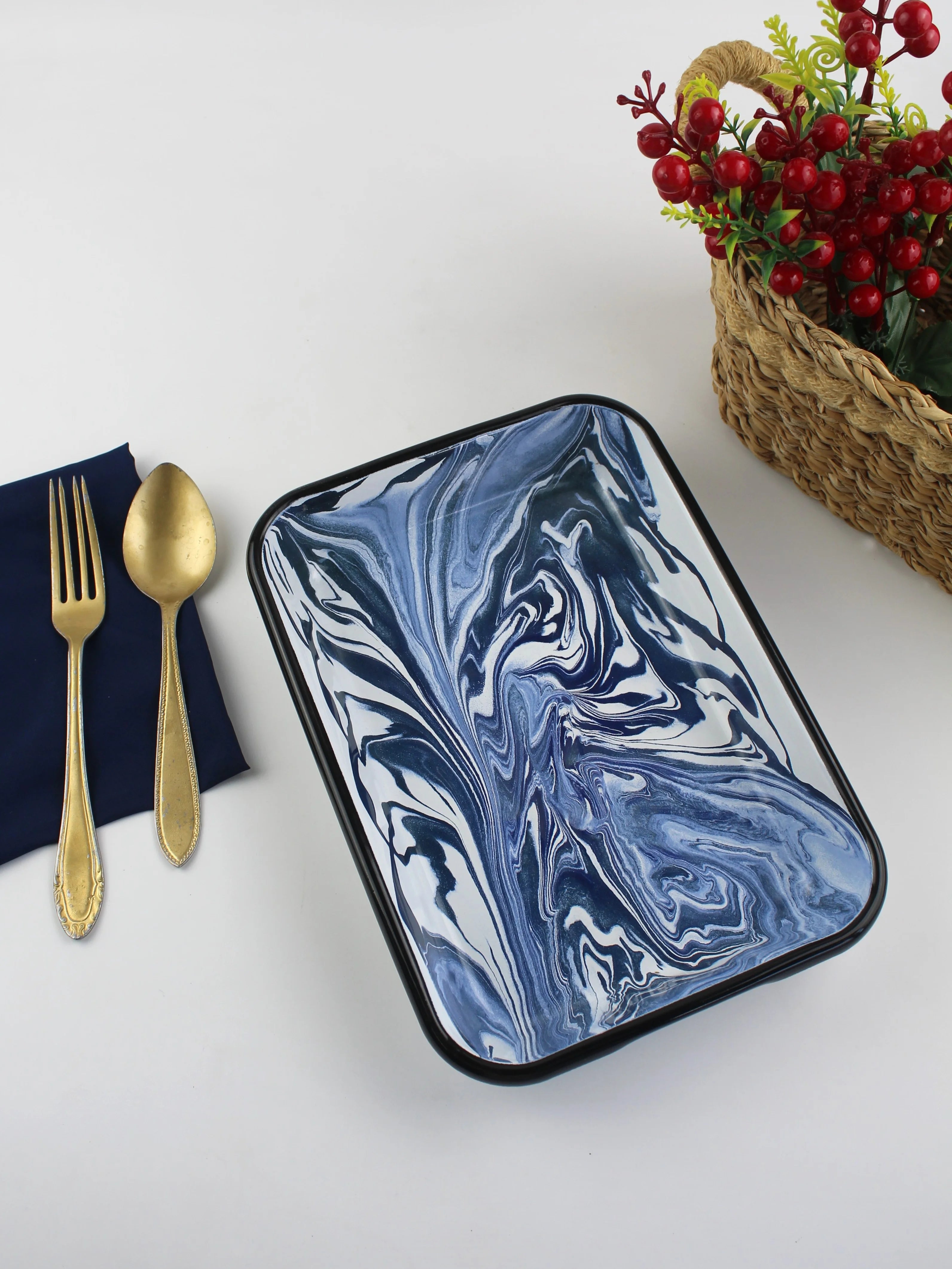 Emaye Lacivert Mermer Desen Meze Tabağı V3