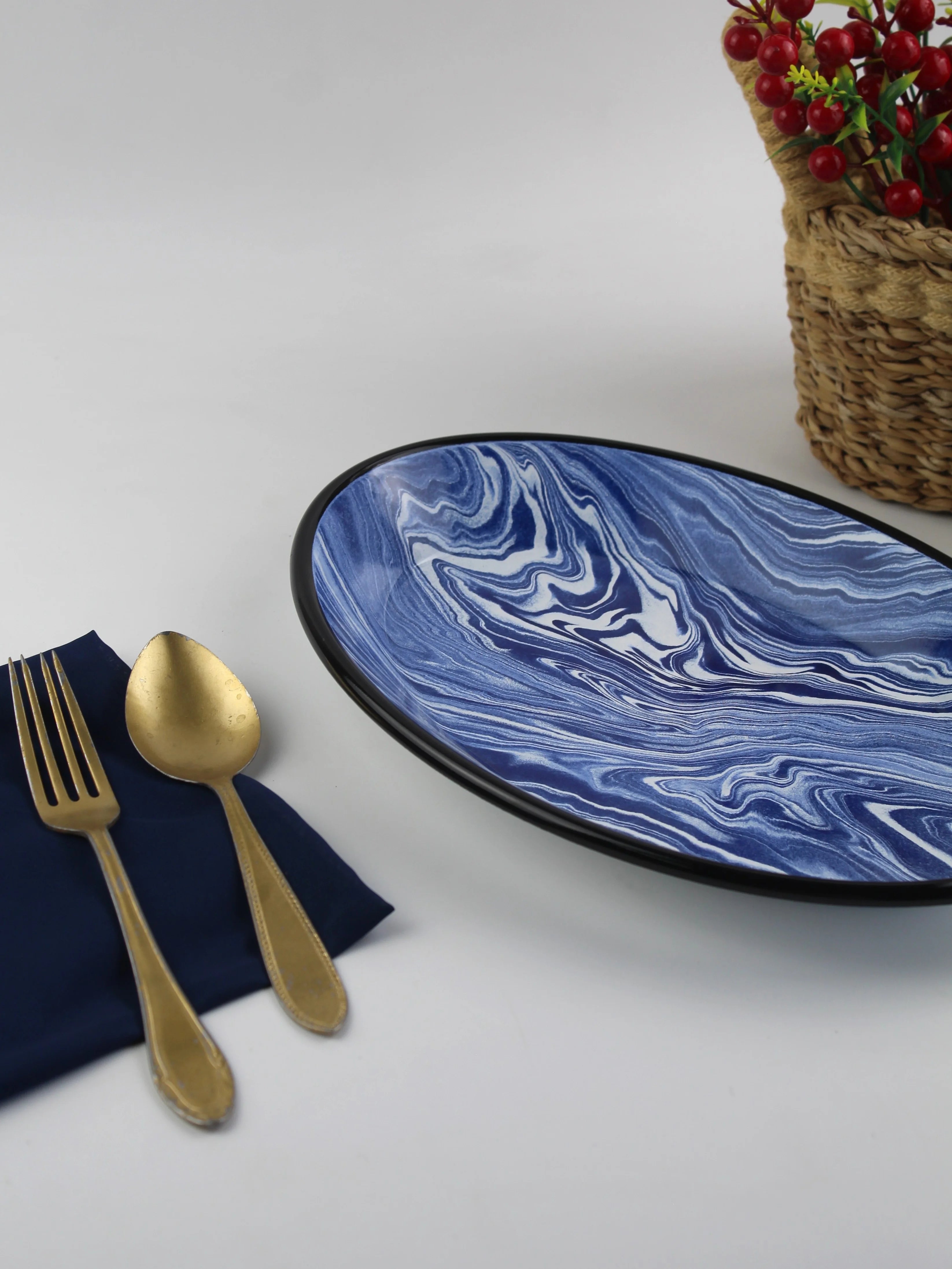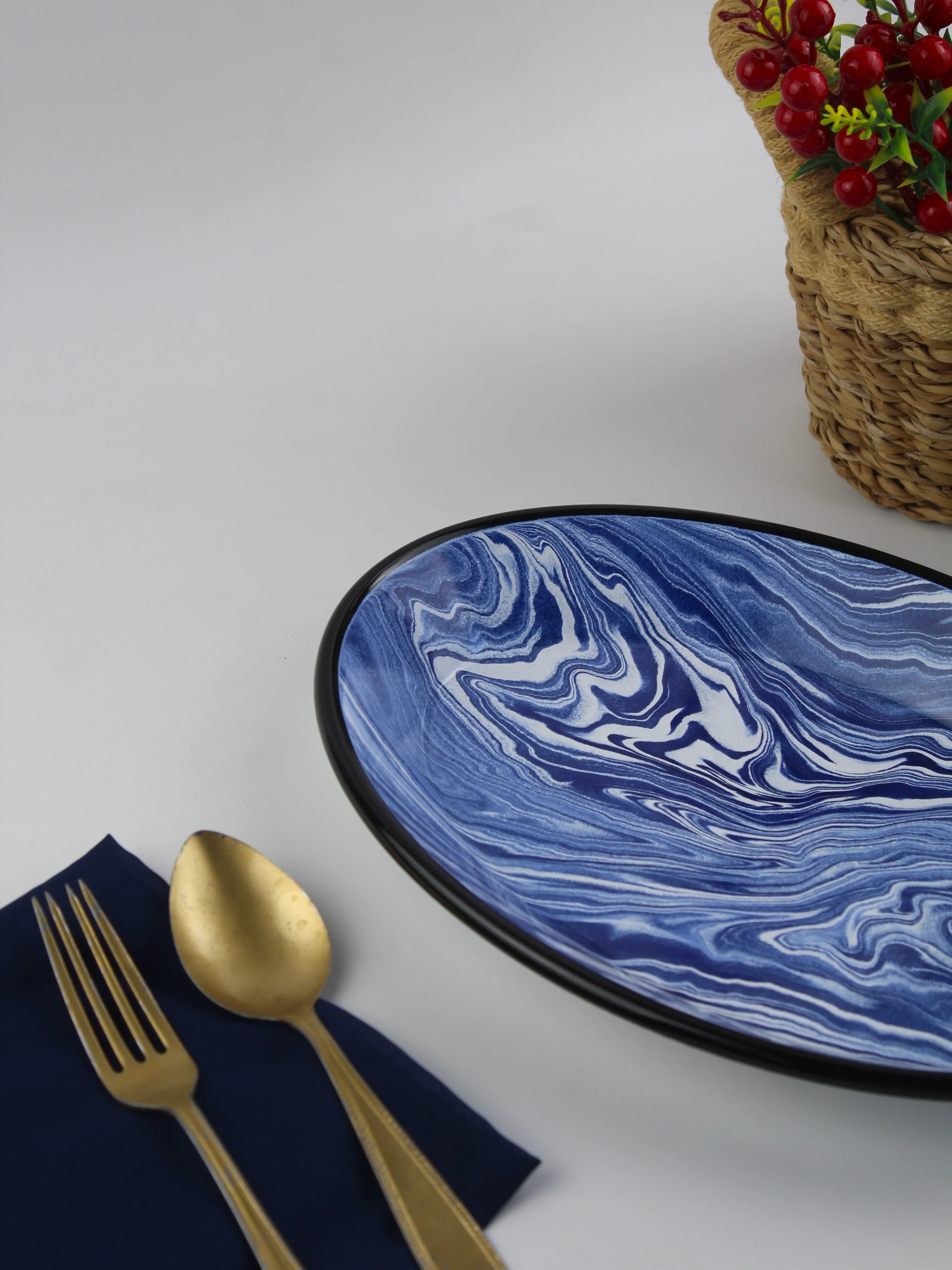🌌 Zarif Mermer Desen: Lacivert doğal mermer deseni ve zarif kenar detaylarıyla sofralarınıza sofistike bir şıklık katar.