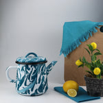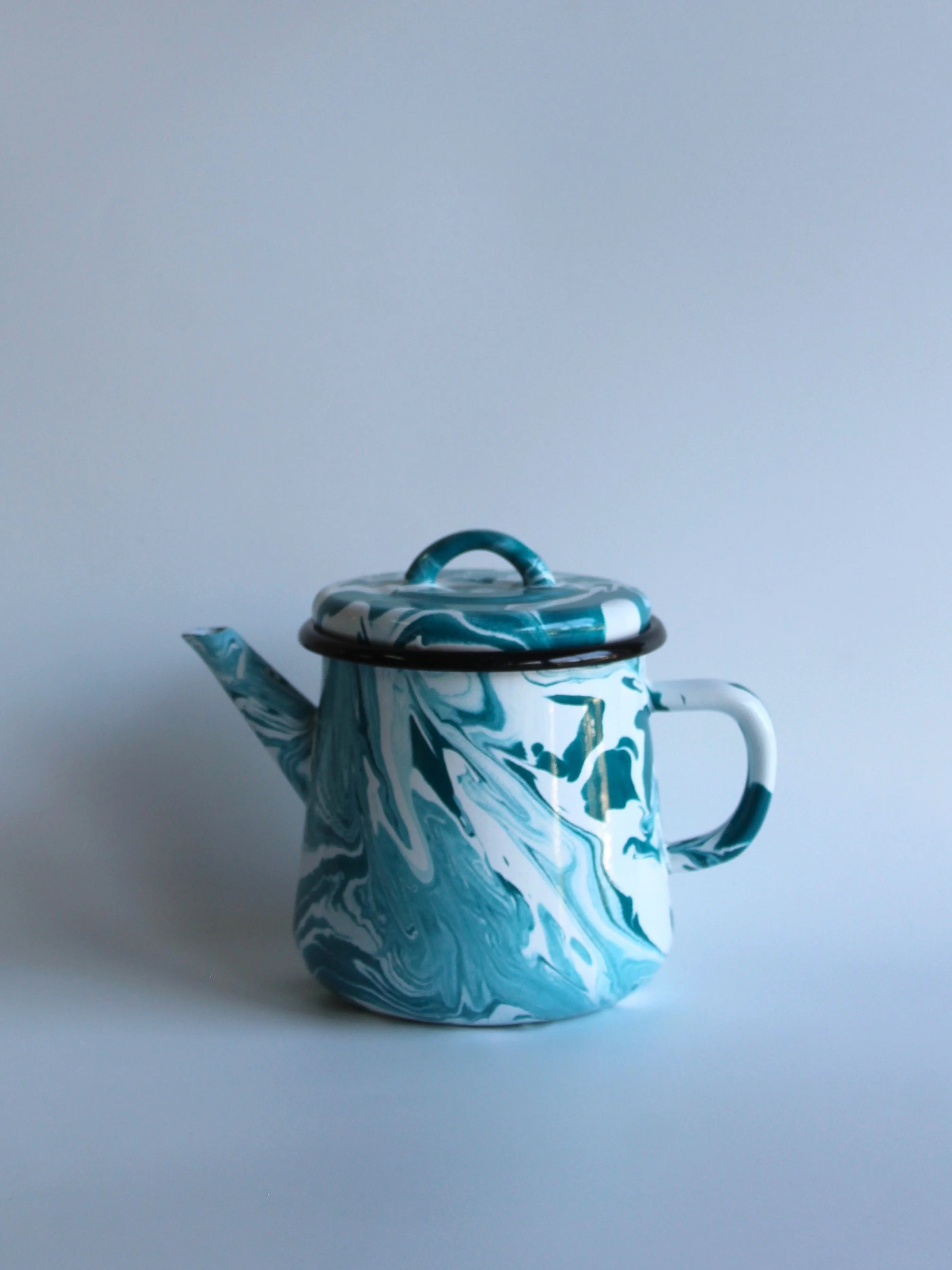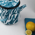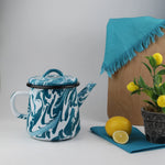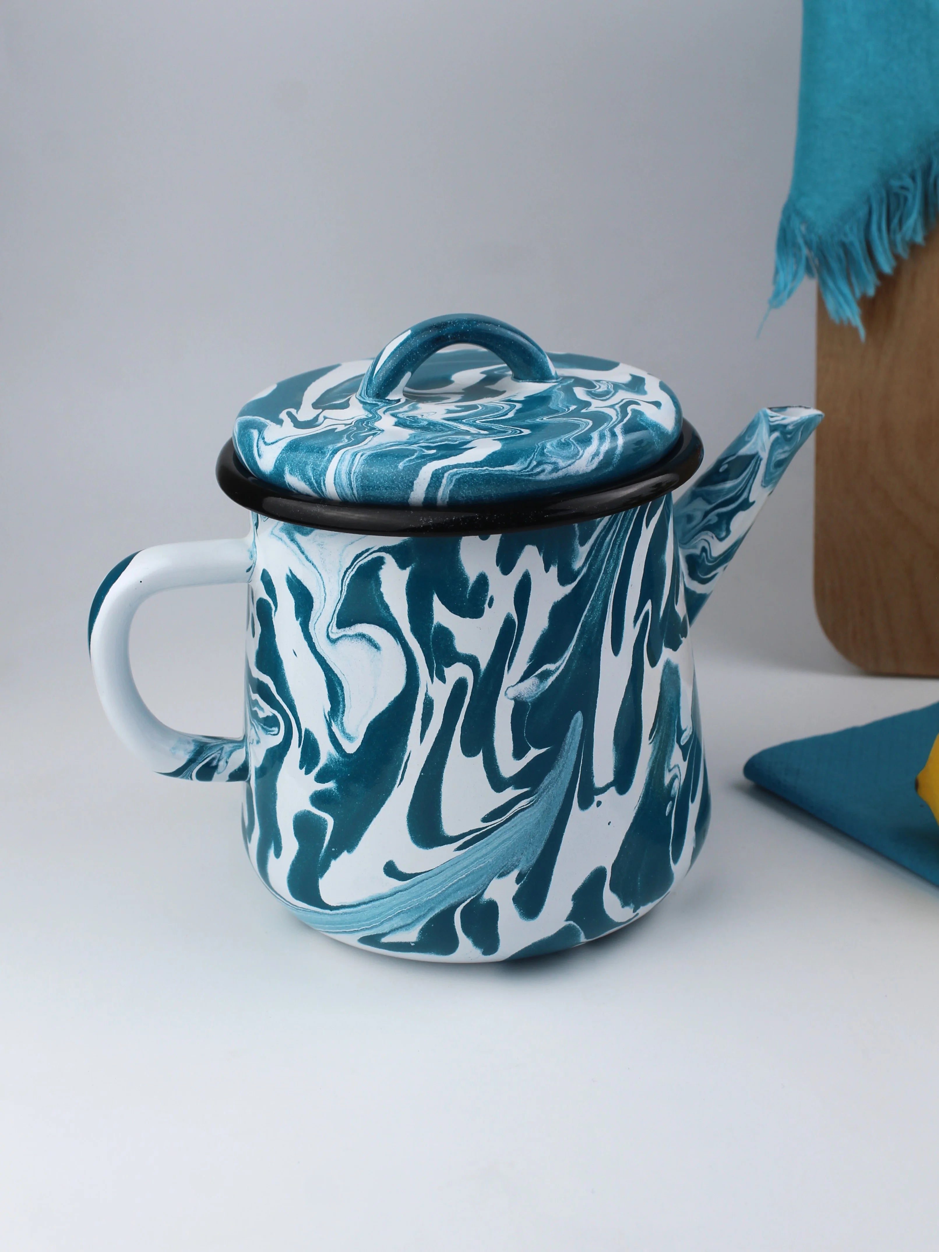 Emaye Turkuaz Mermer Desen Büyük Demlik 1100ml