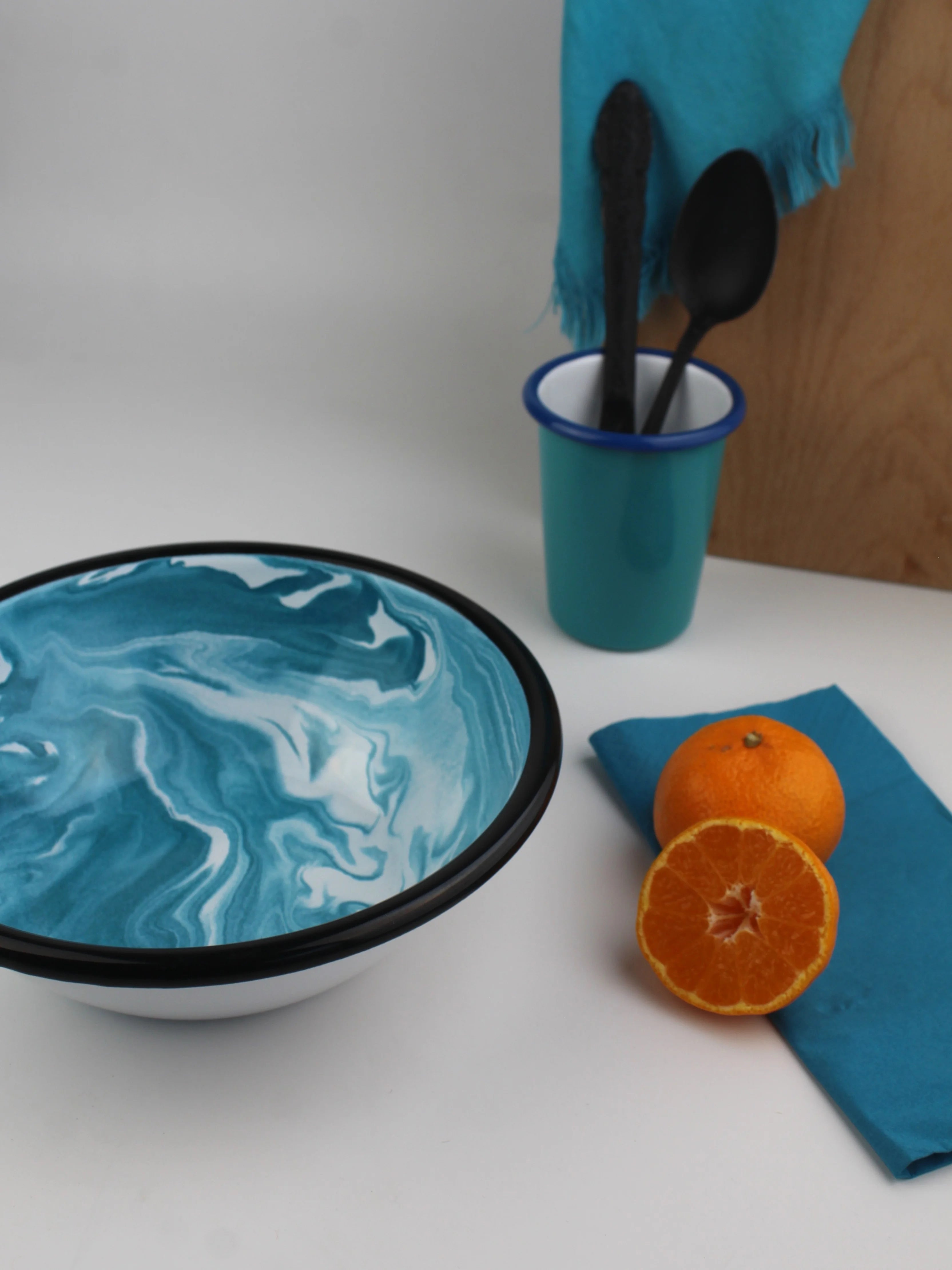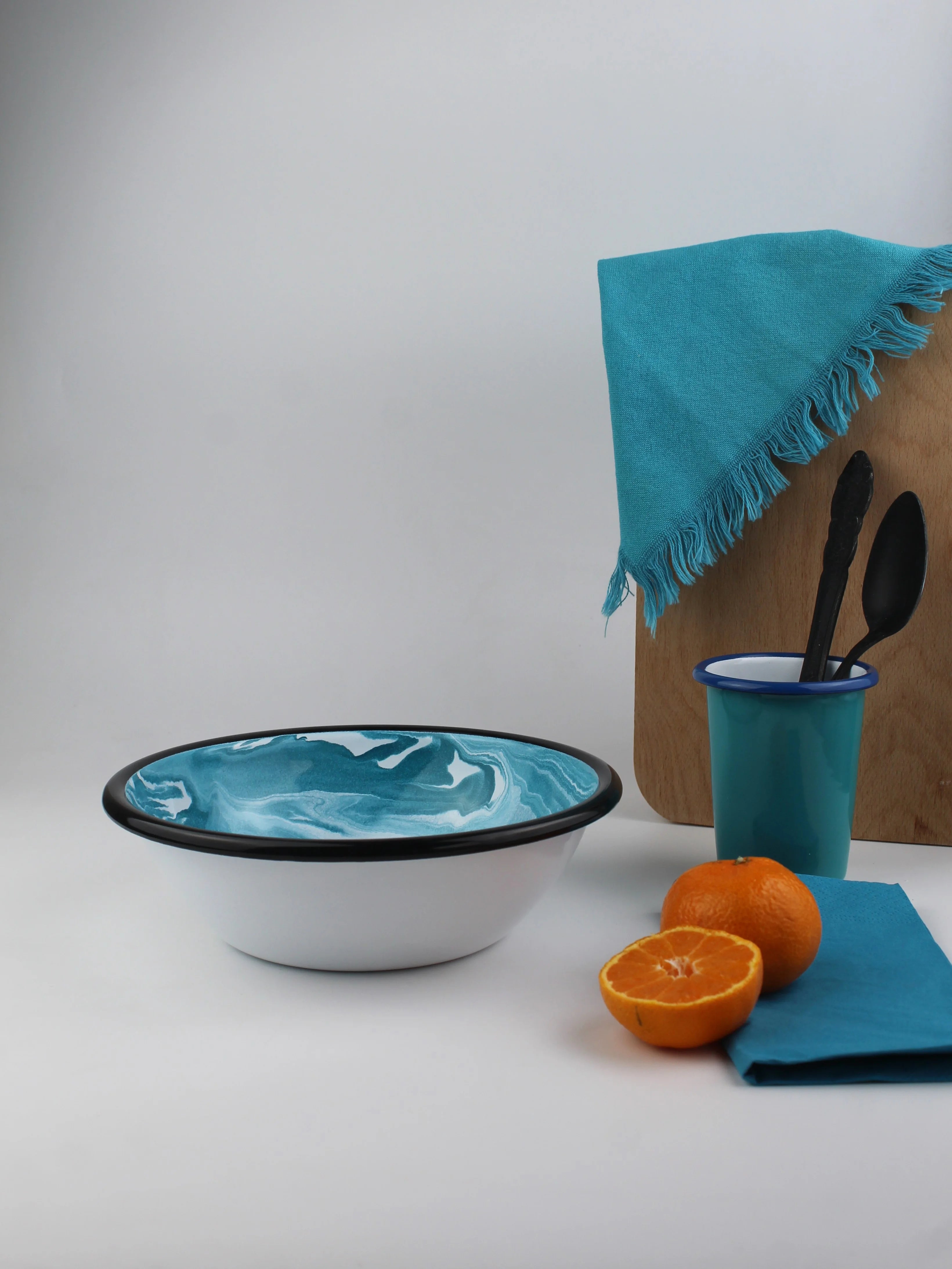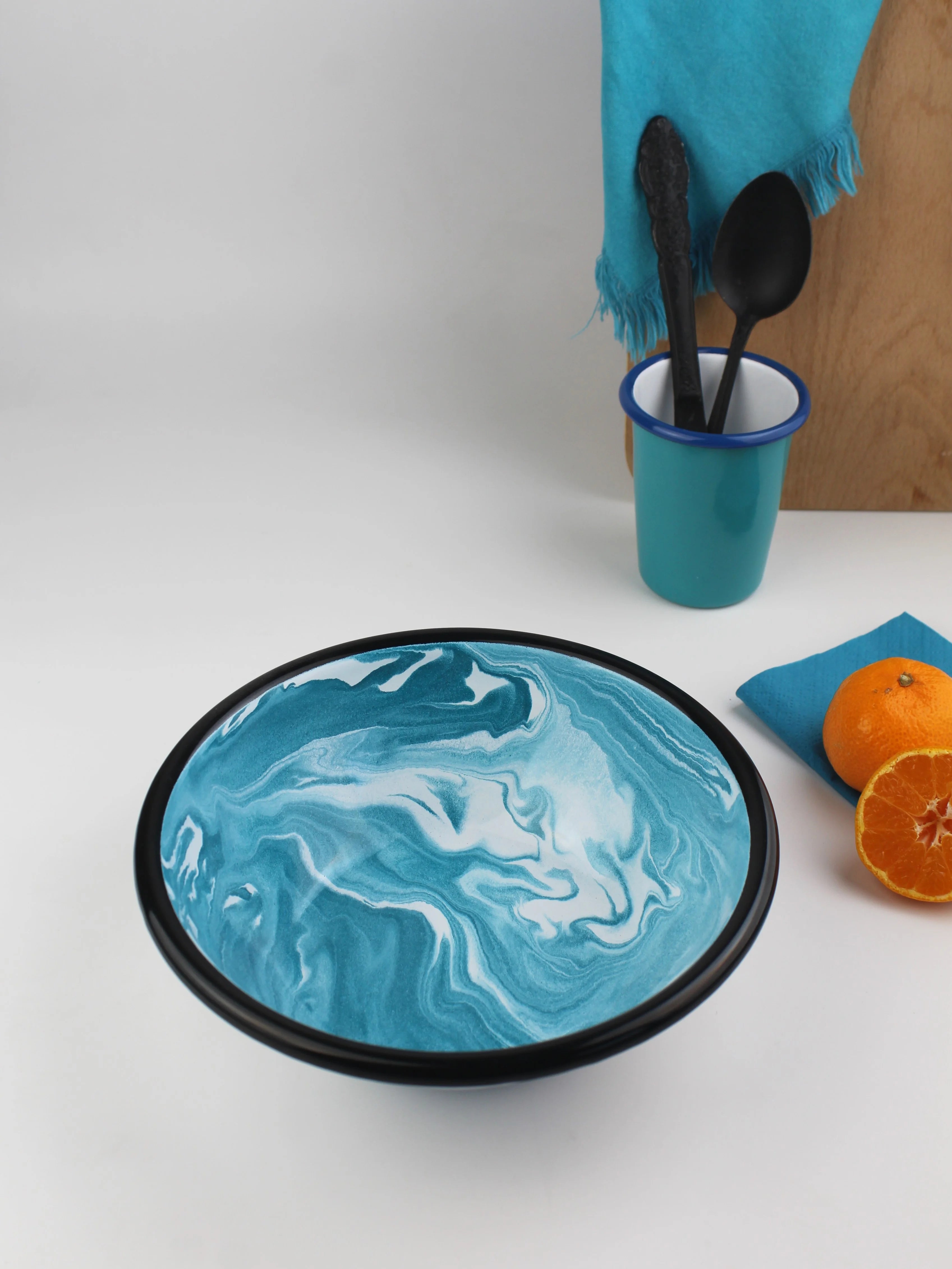 Emaye Turkuaz Mermer Desen Kase 20 cm