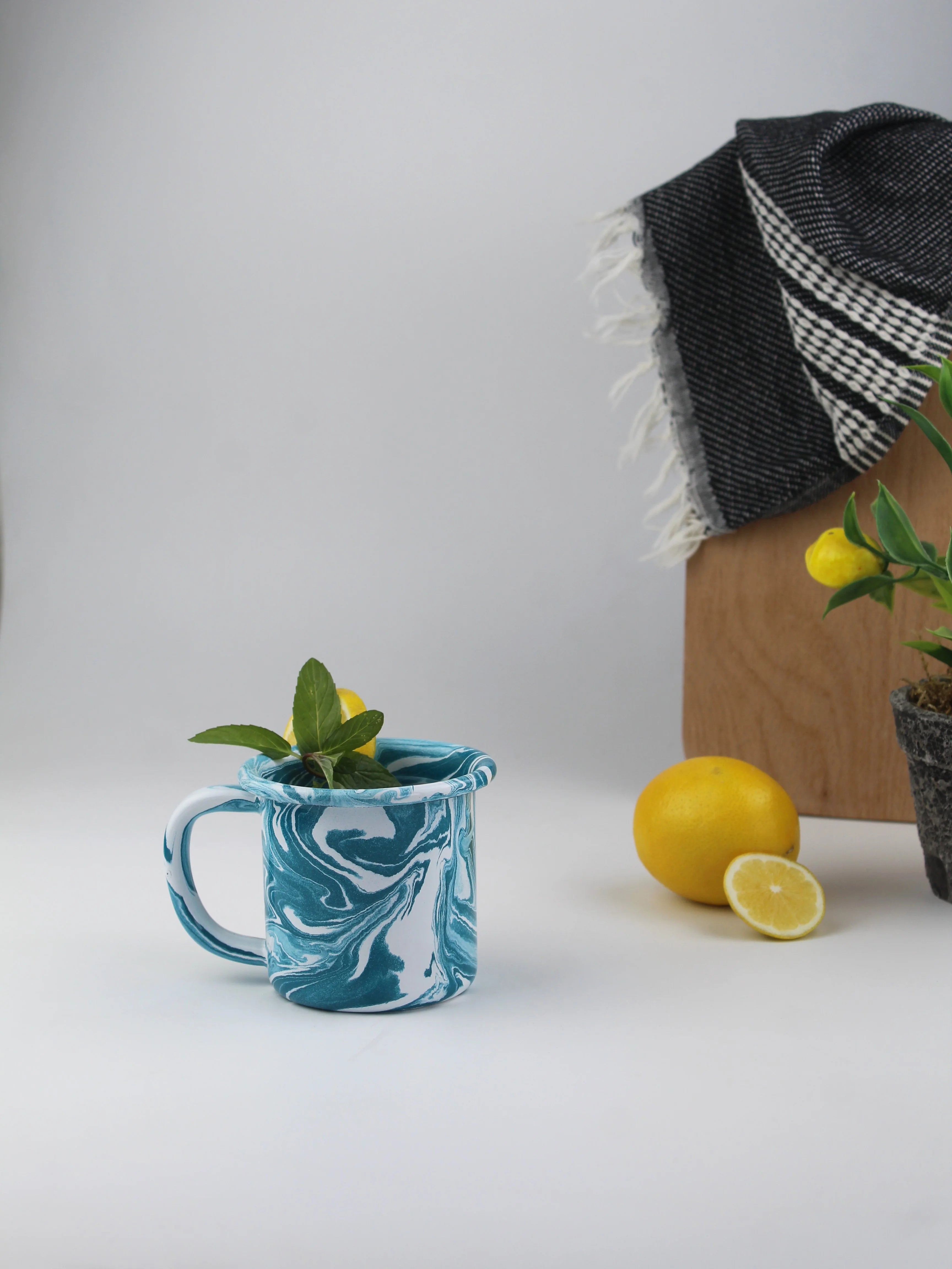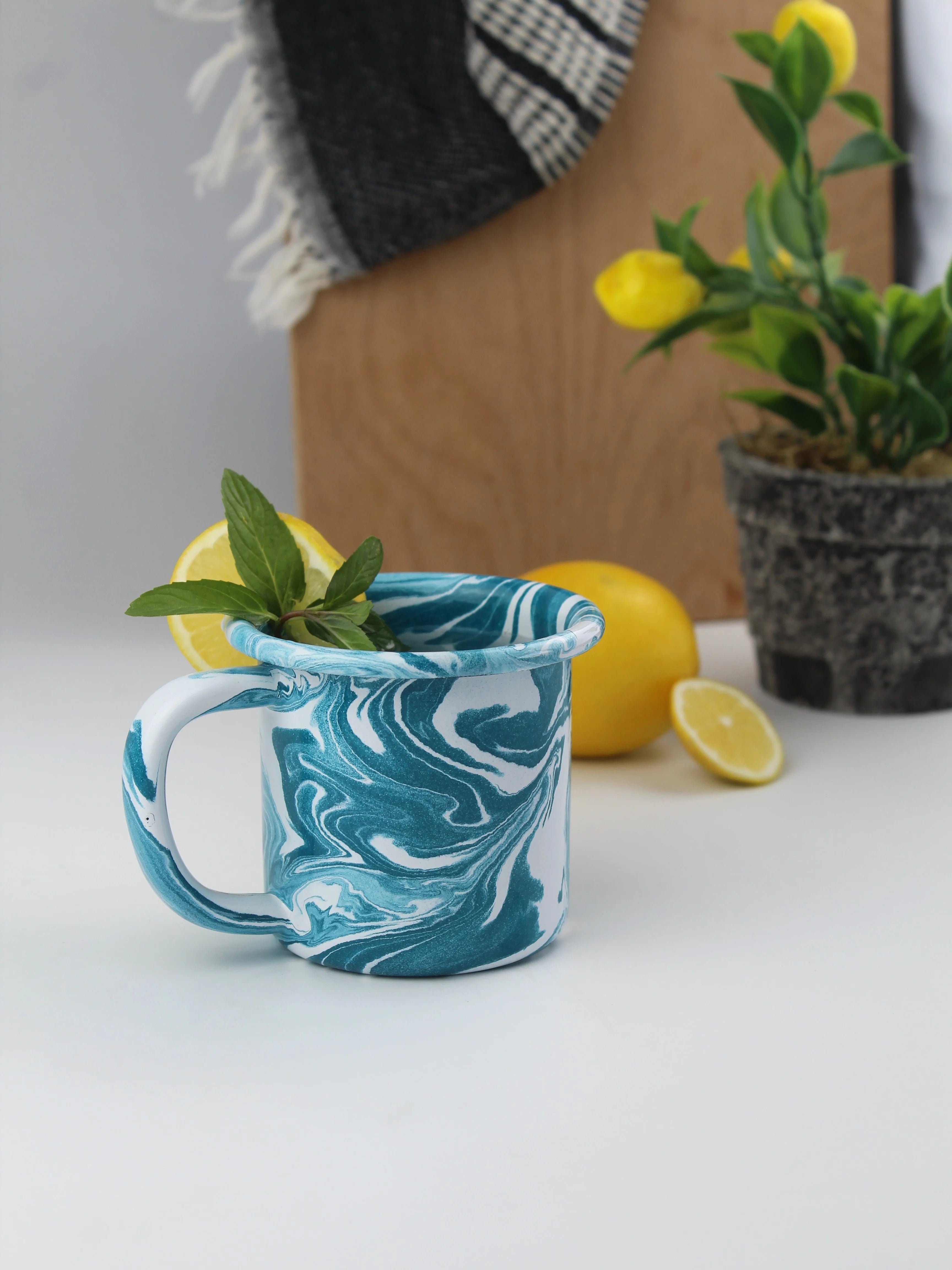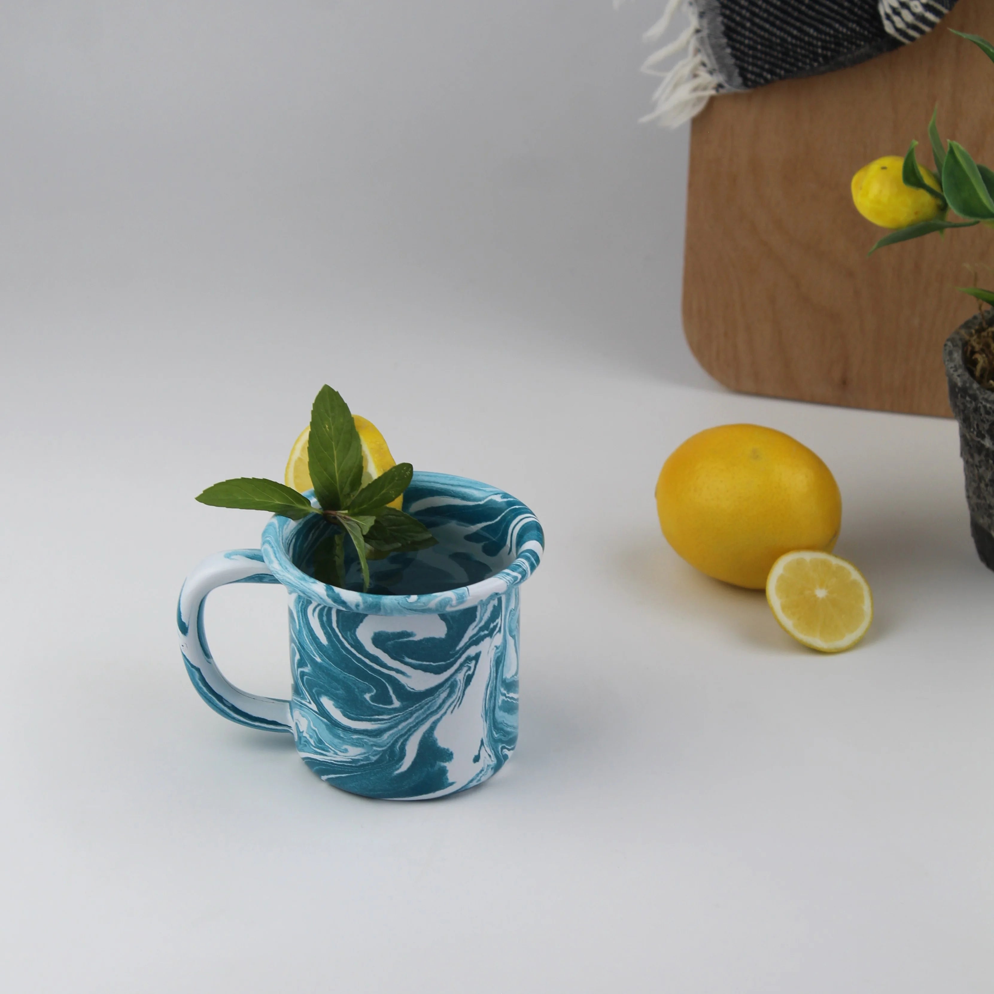Emaye Turkuaz Mermer Desen Kupa 250ml