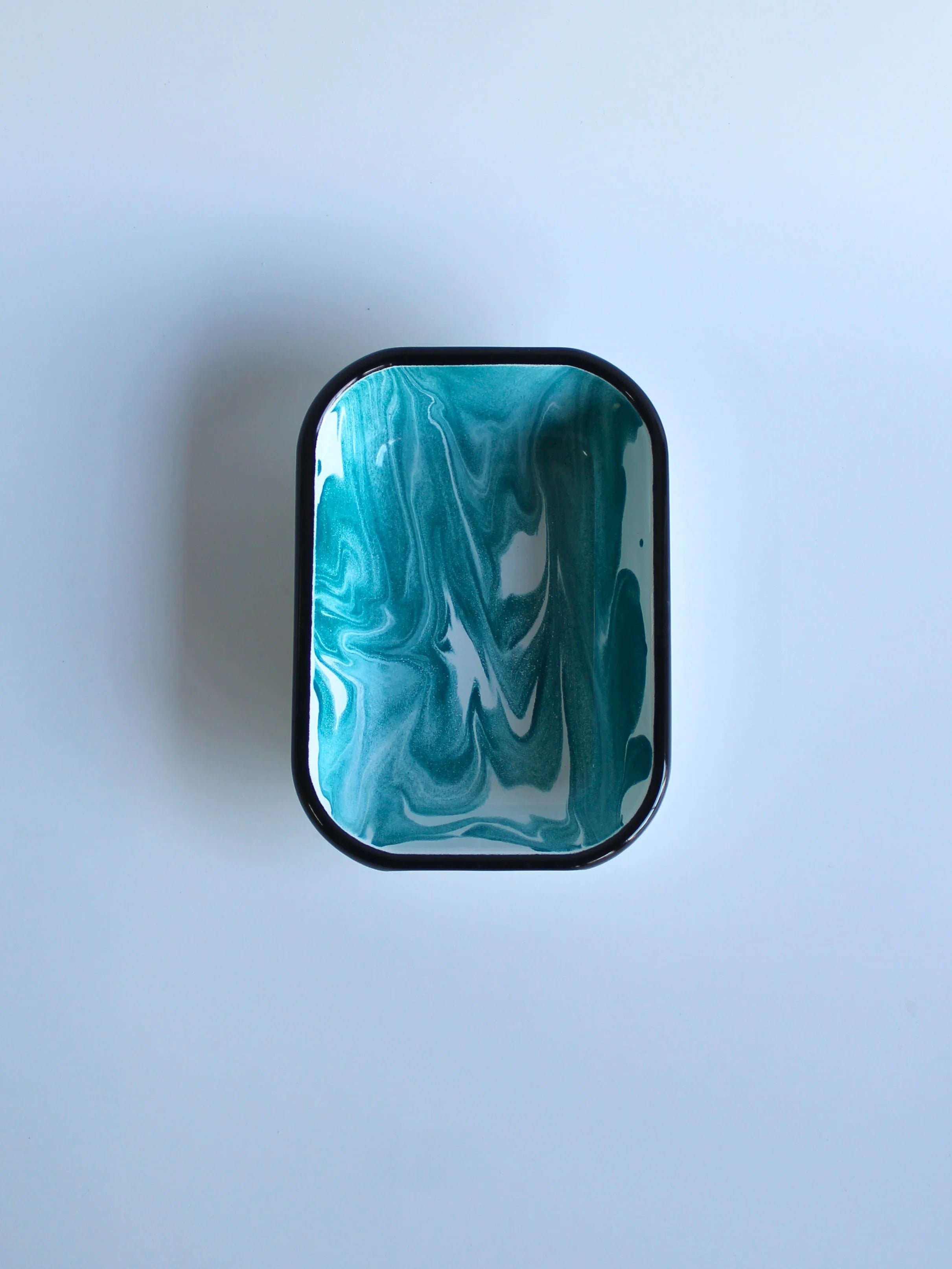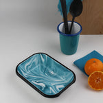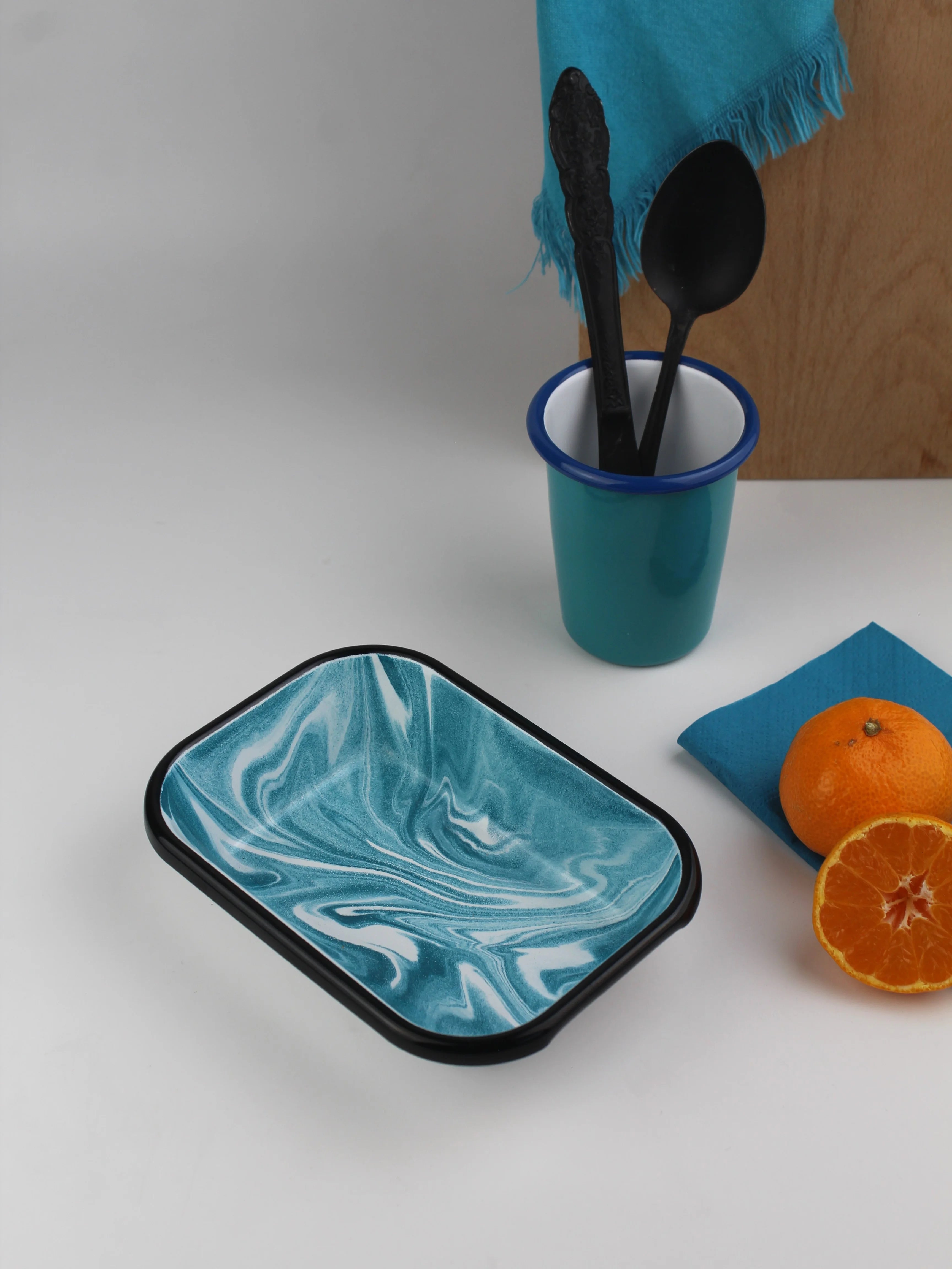 🌊 Zarif Mermer Desen: Beyaz zemin üzerindeki turkuaz doğal mermer deseni ve ince siyah kenar detayı sofralarınıza modern bir şıklık katar.