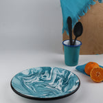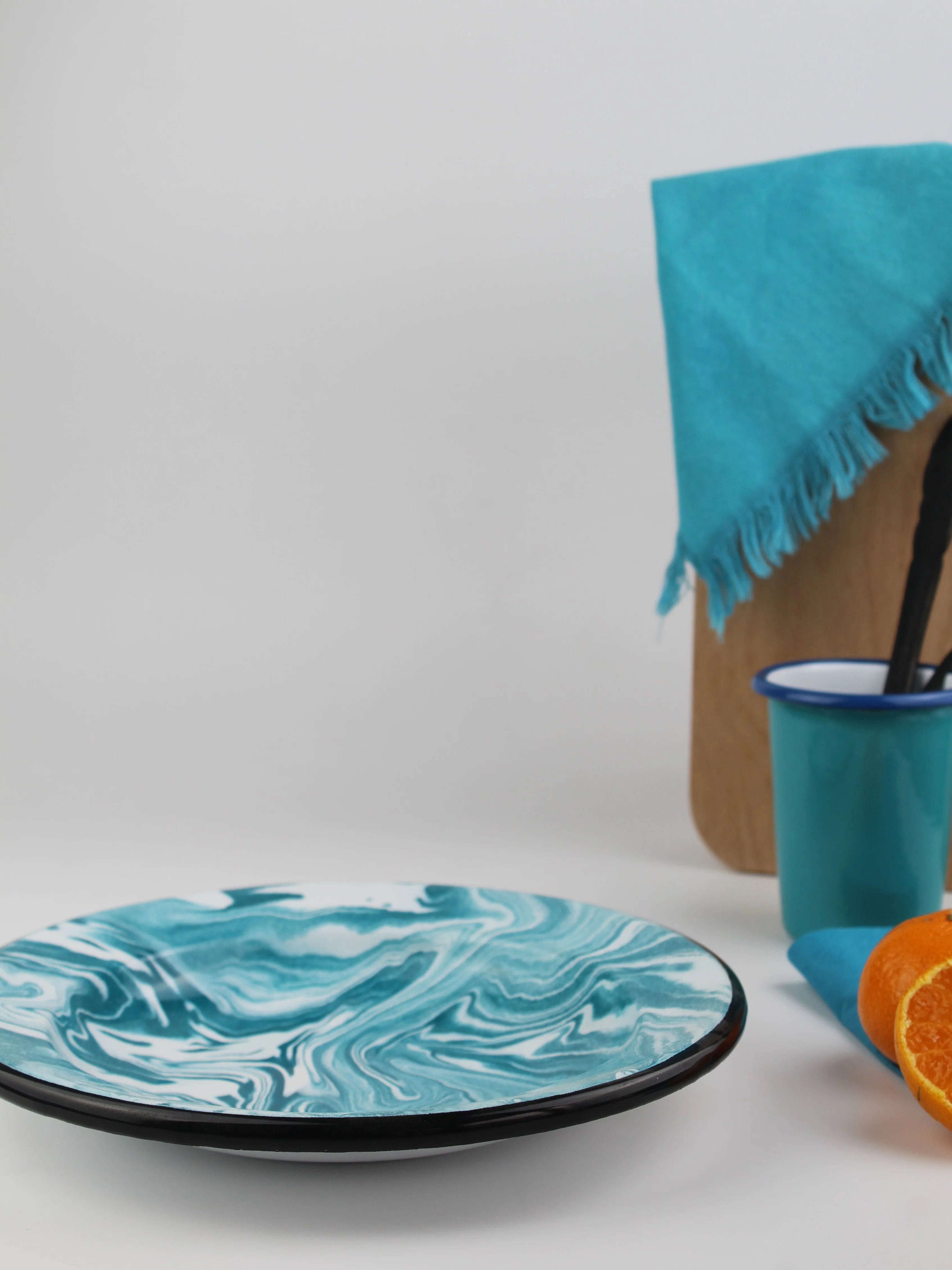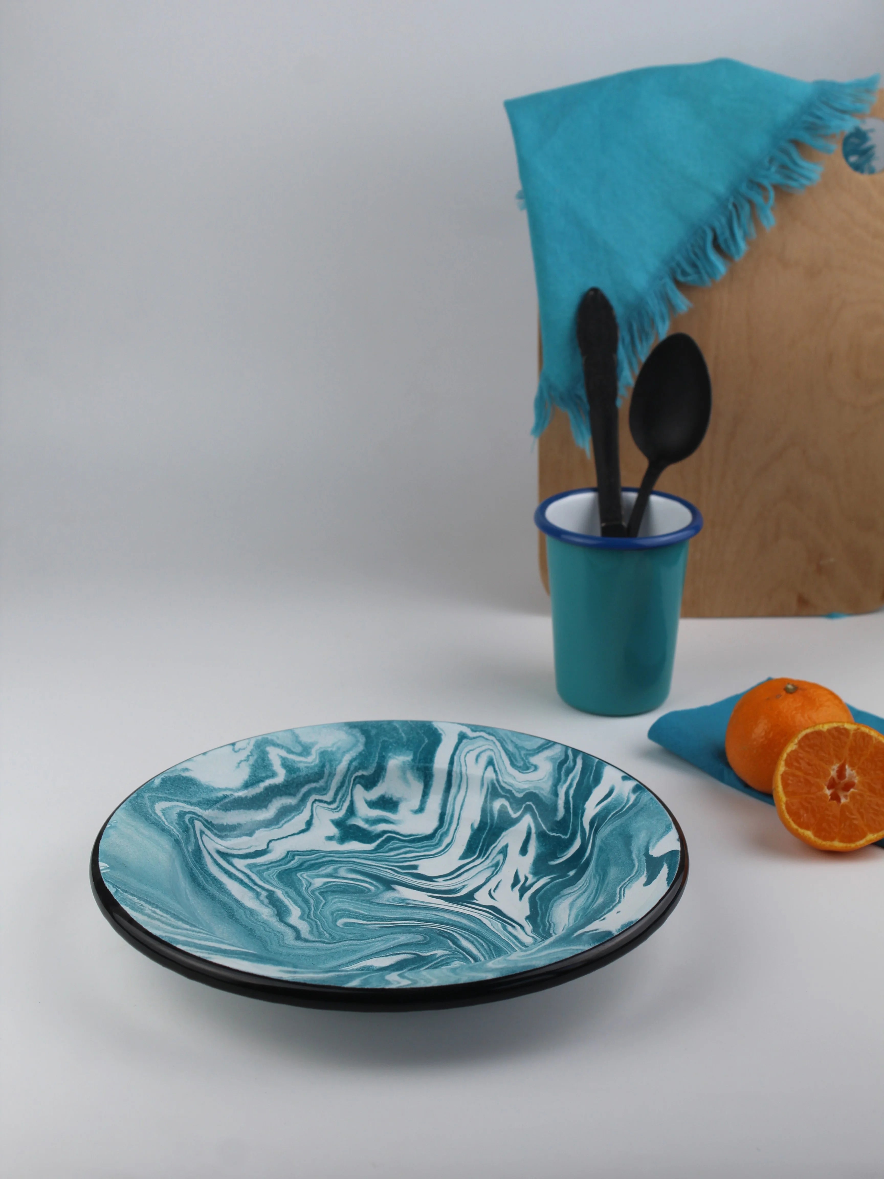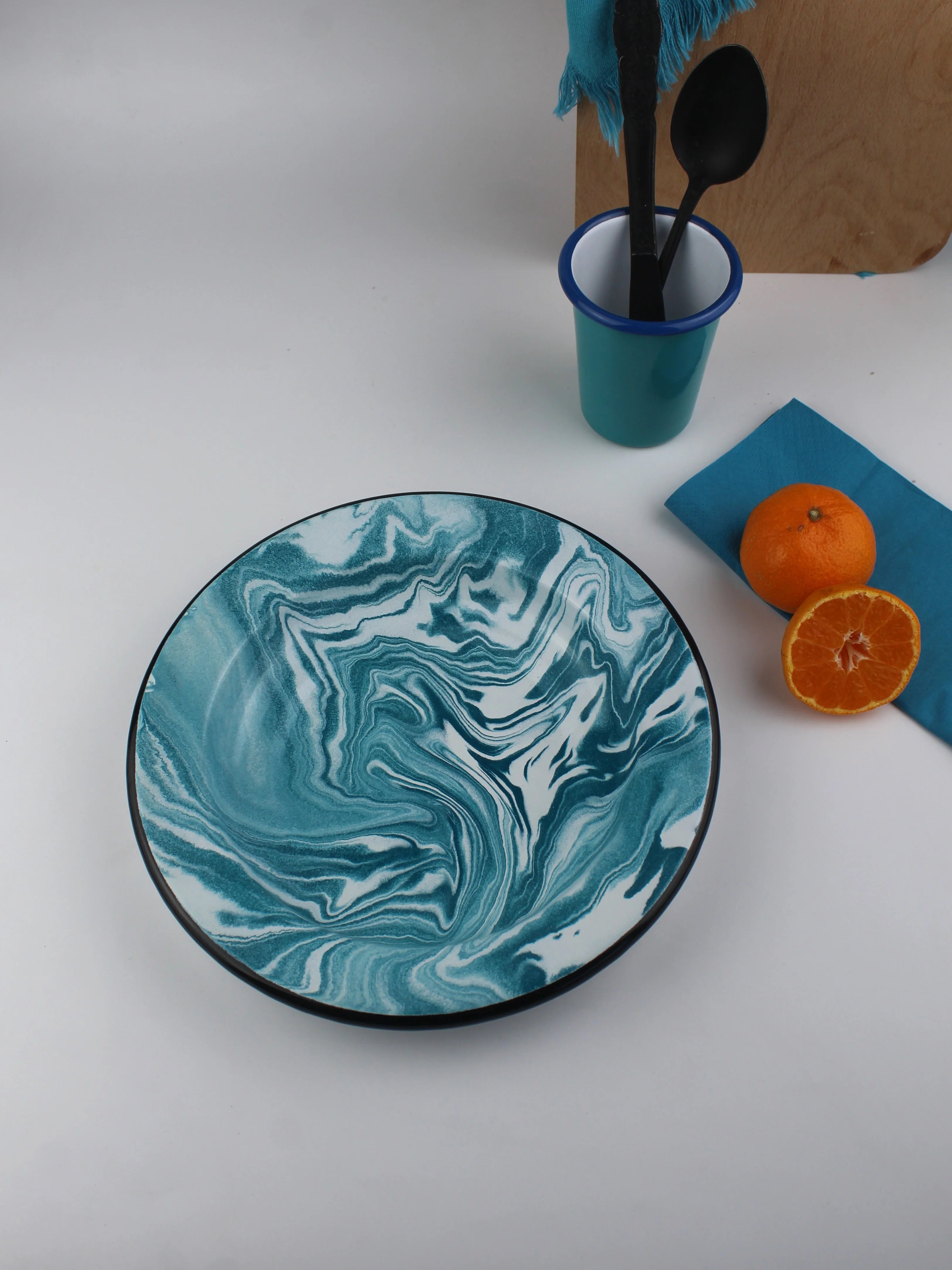 Emaye Turkuaz Mermer Desen Tabak 23cm