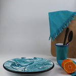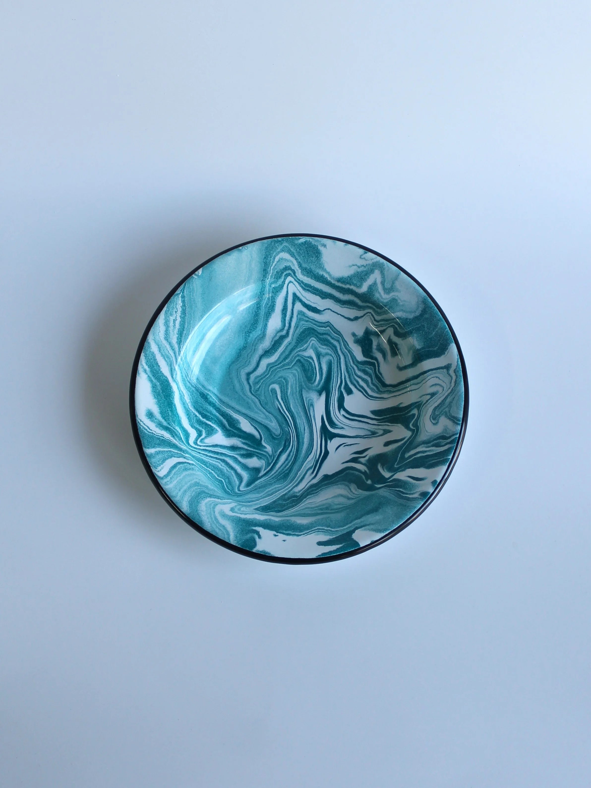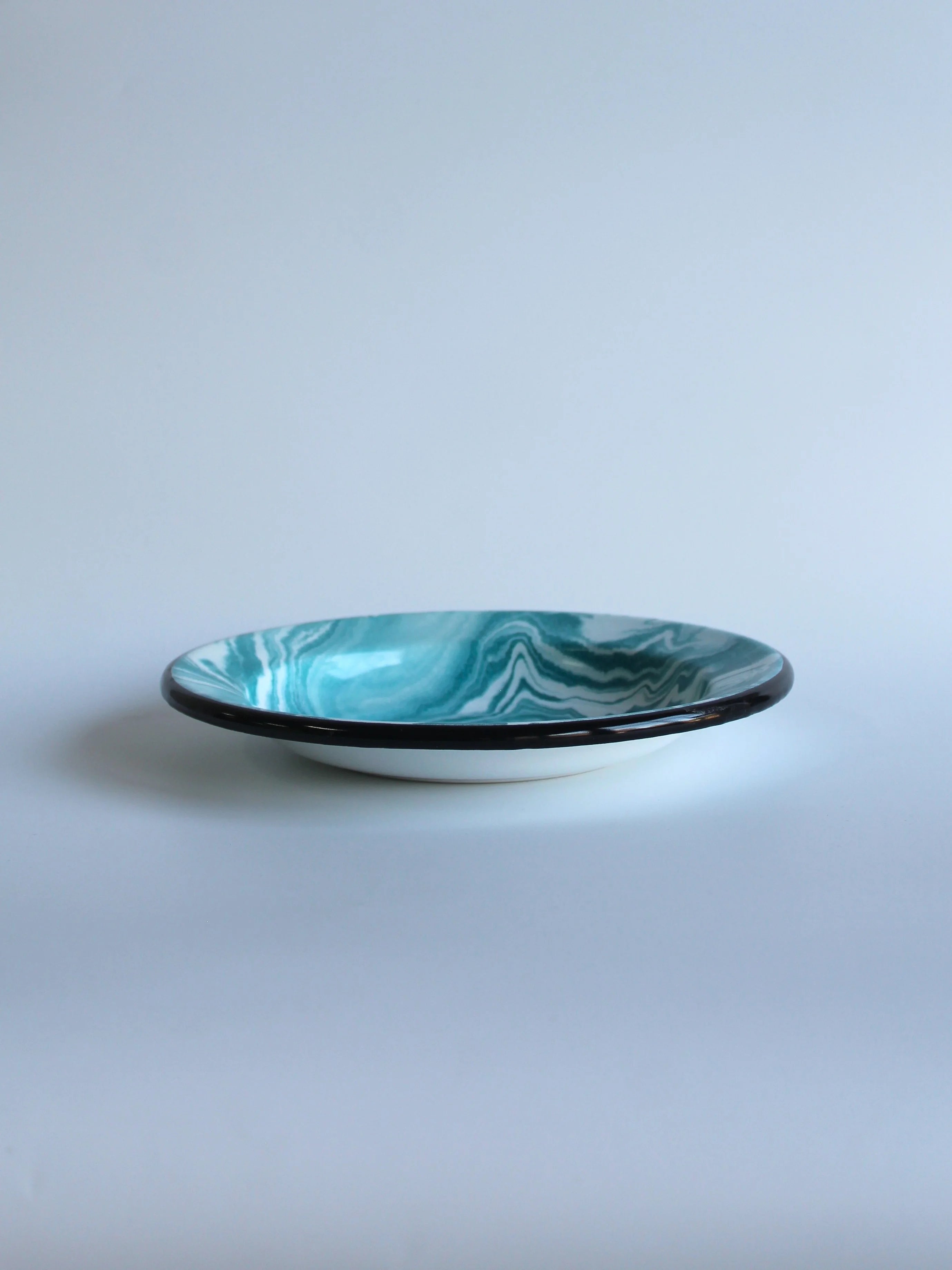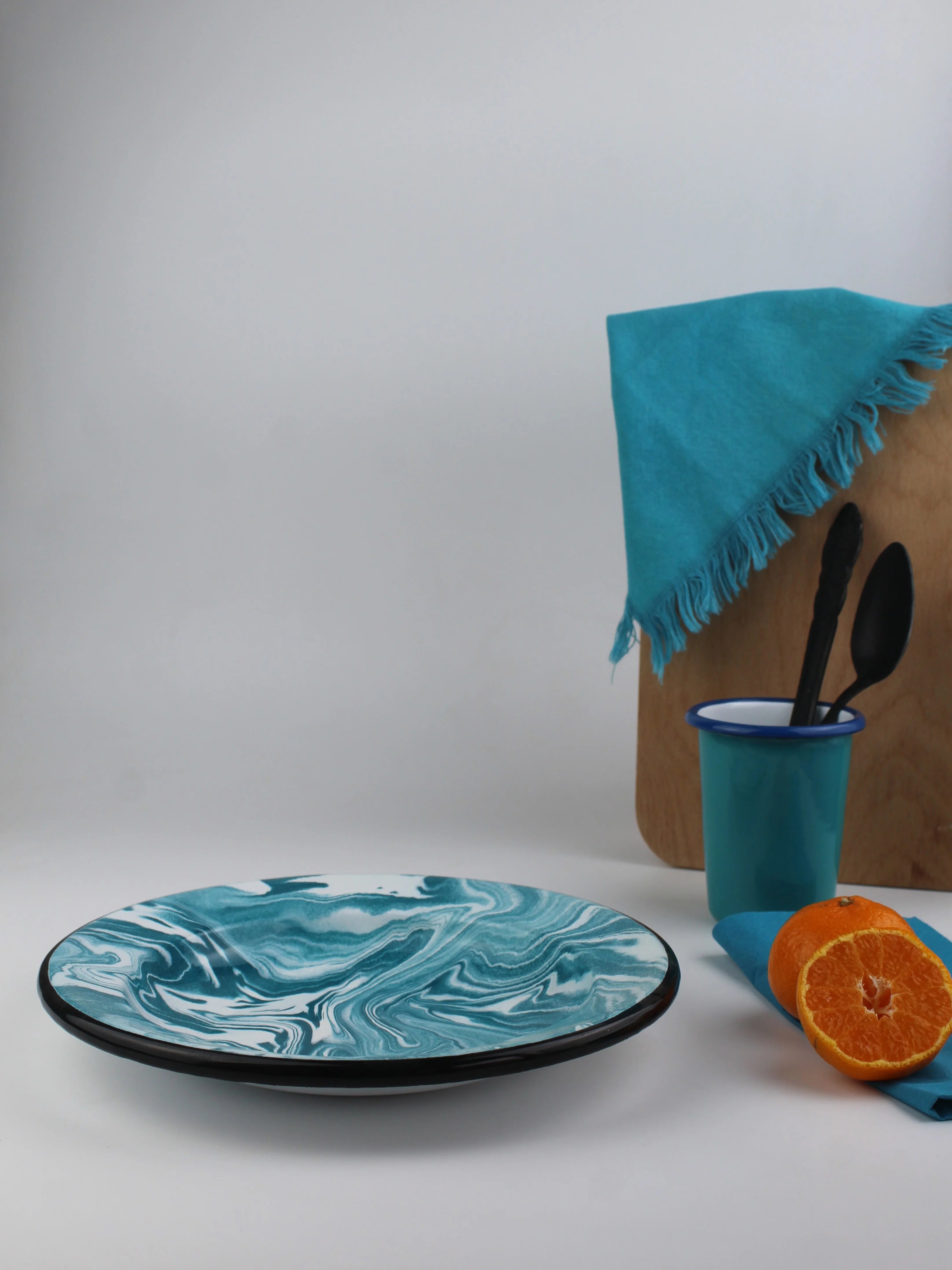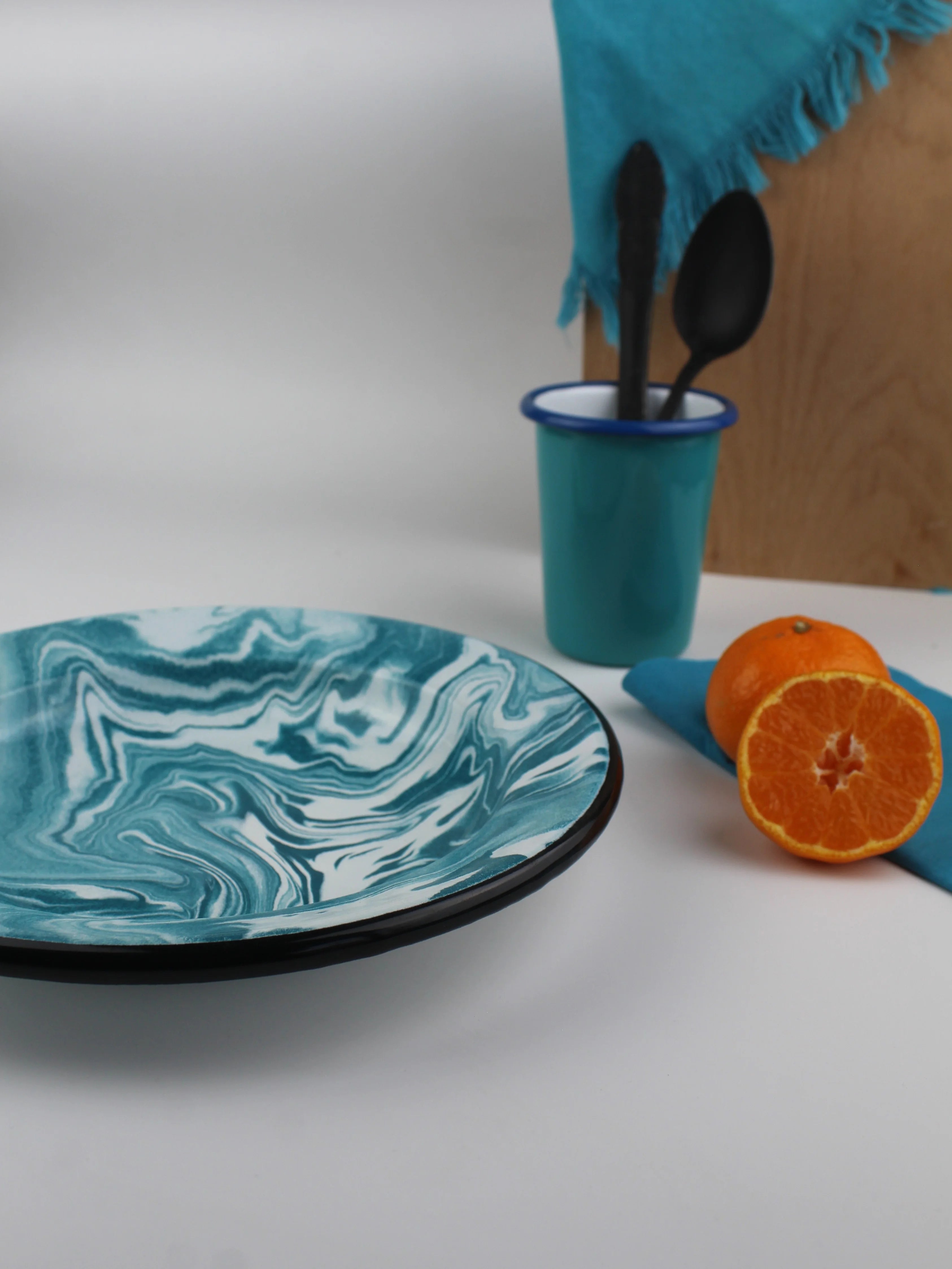 Emaye Turkuaz Mermer Desen Tabak 23cm