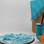 🌊 Zarif Mermer Desen: Beyaz zemin üzerindeki turkuaz doğal mermer deseni ve kontrast kenar detayı, sofralarınıza şıklık ve canlılık katar.