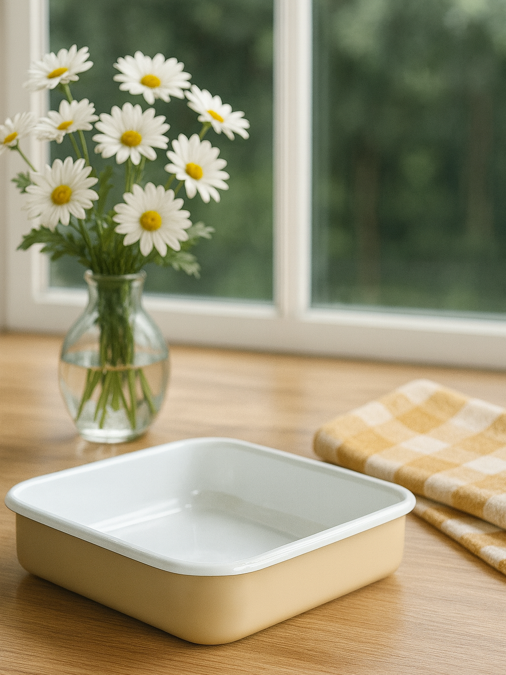 Emaye Kare Tepsi 20*20 cm Beyaz