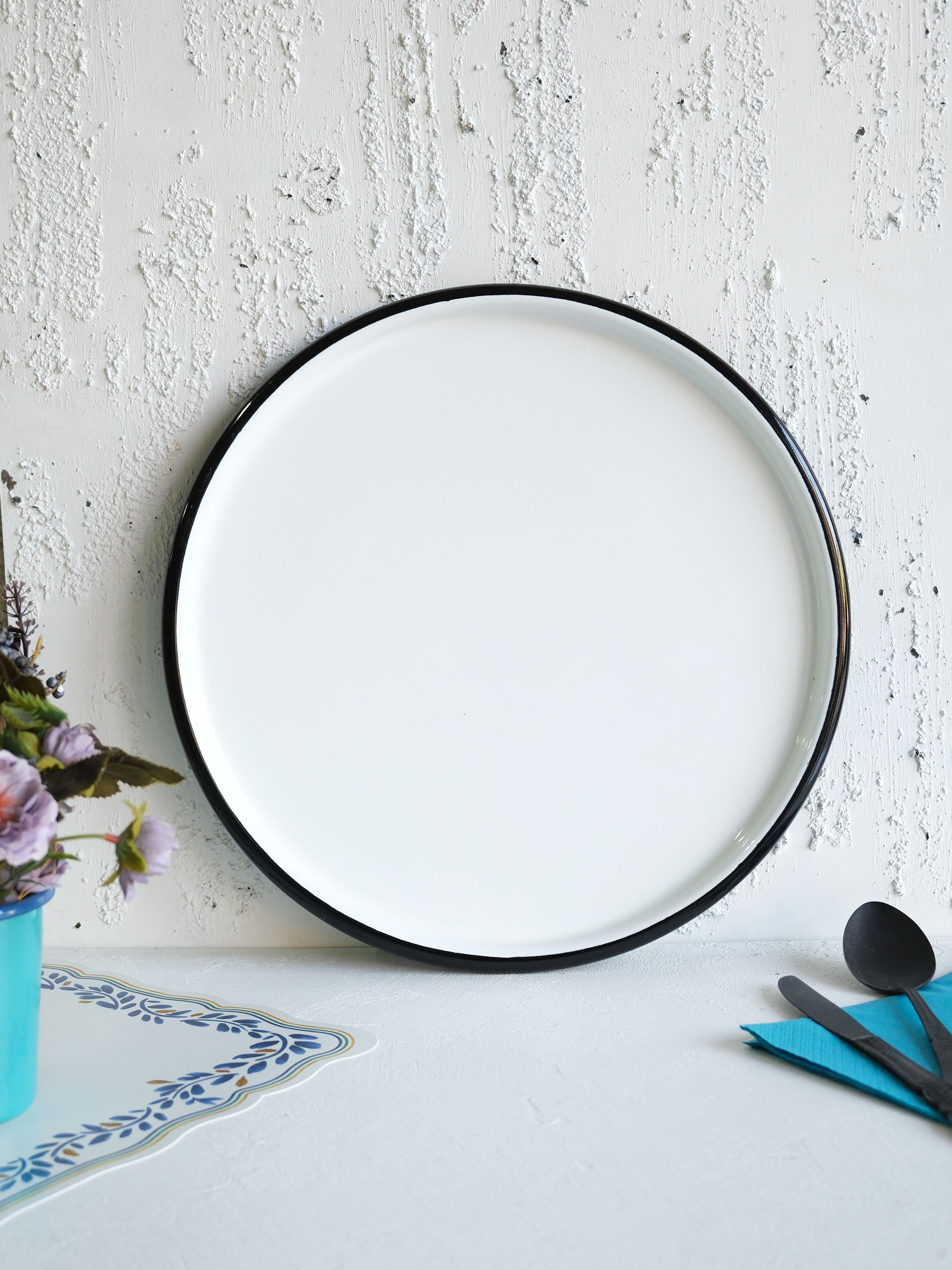Emaye Pizza Tepsi 28cm - Beyaz Sıçratma