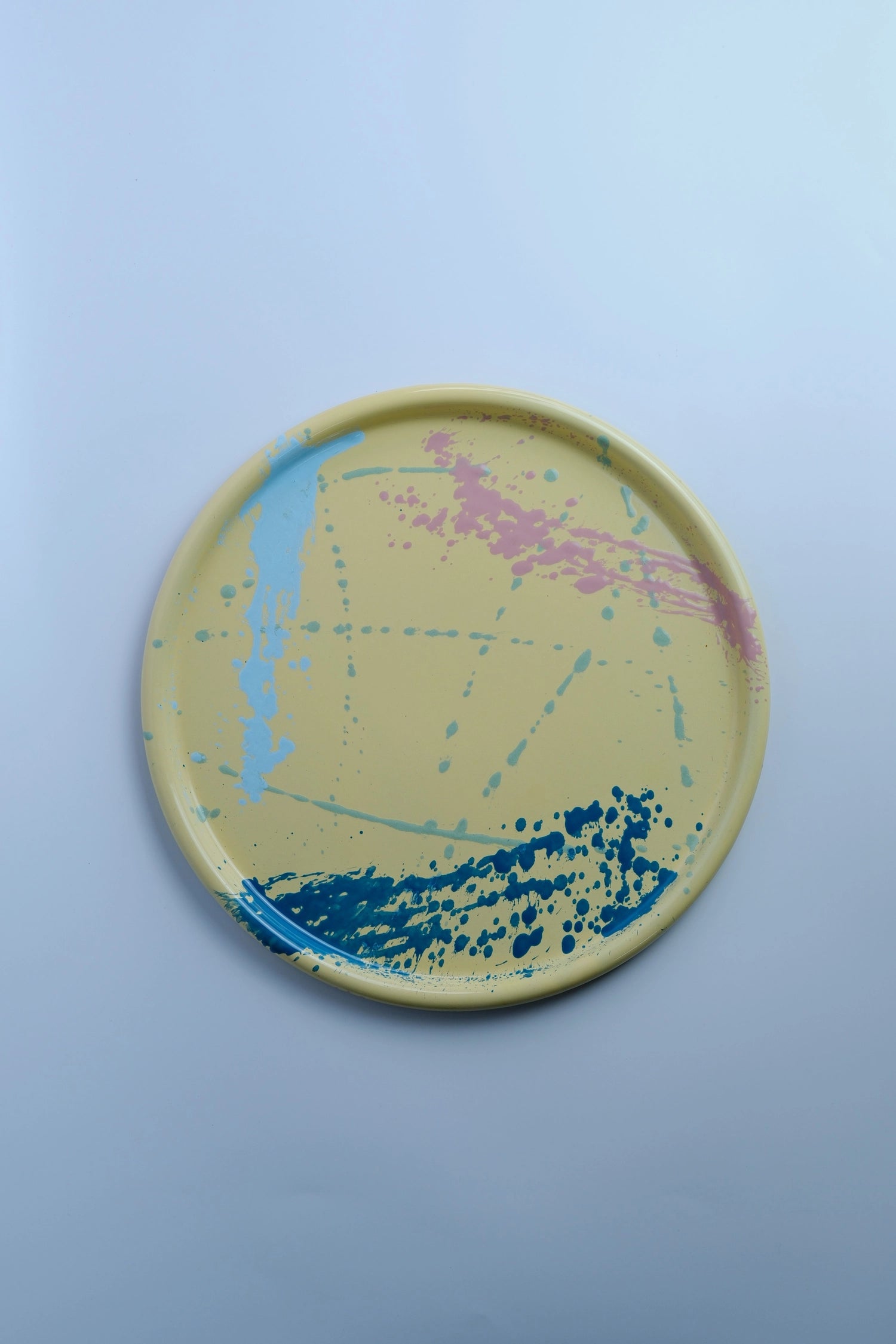 Emaye Pizza Tepsi 28cm - Sarı Sıçratma