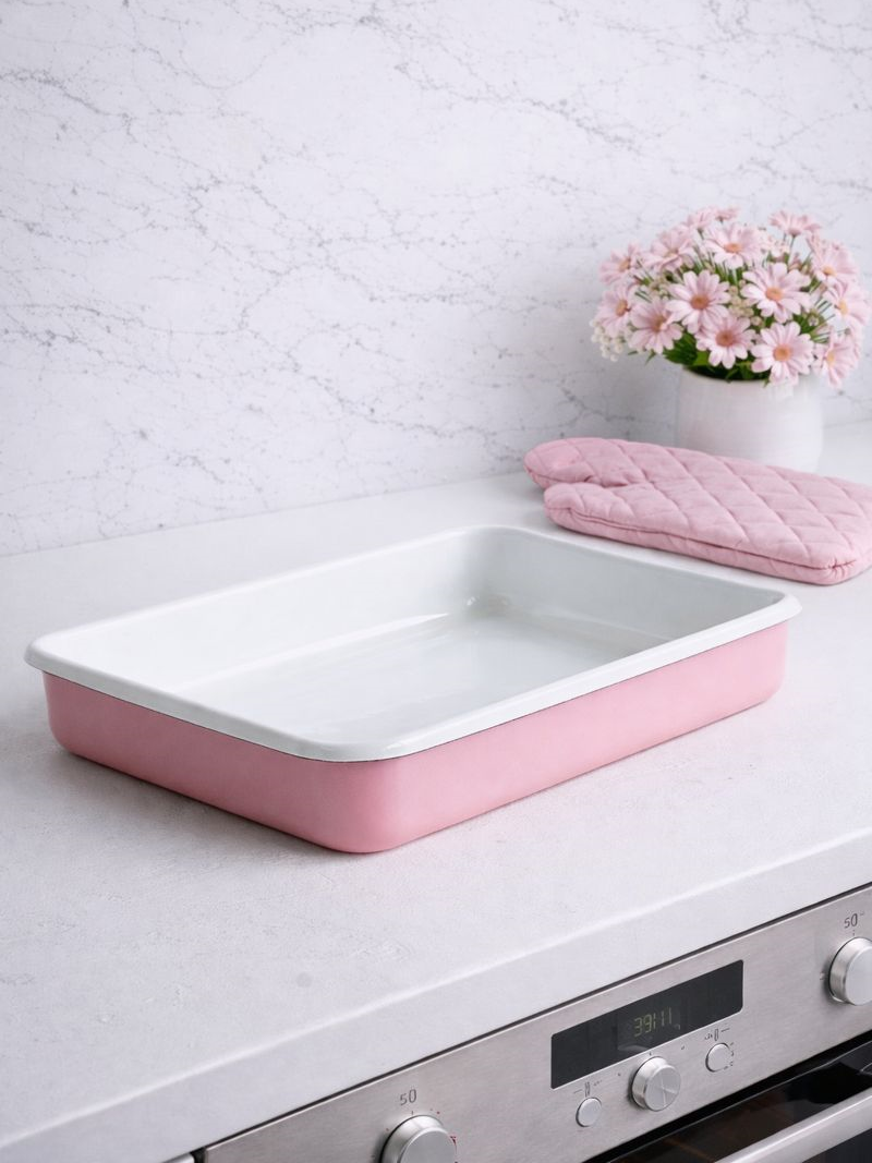 Emaye Dikdörtgen Fırın Tepsi - Pembe
